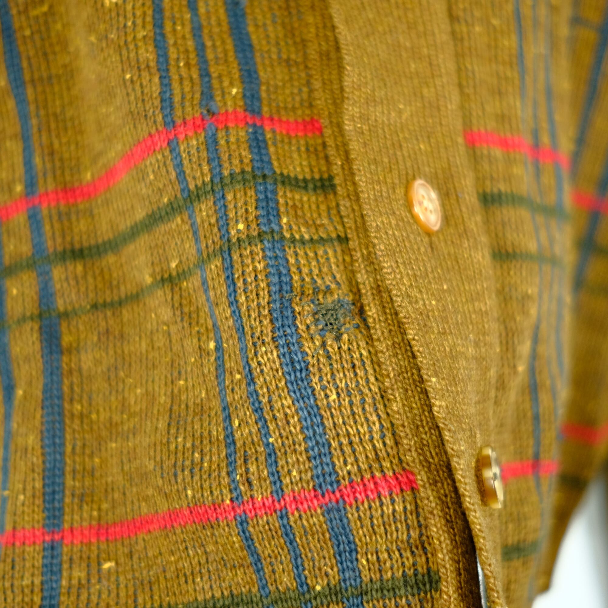 1960〜70s ビンテージ チェック柄ニットカーディガン 襟付き 古着屋