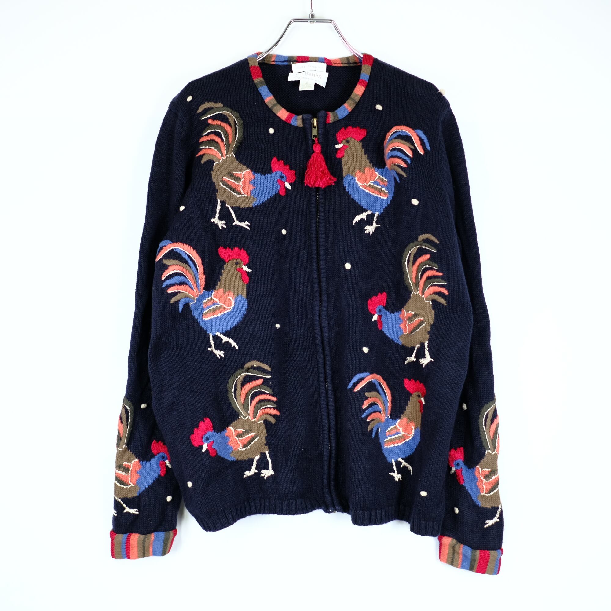 ビンテージ ハンドメイド 刺繍 ニットカーディガン ジップアップ セーター
