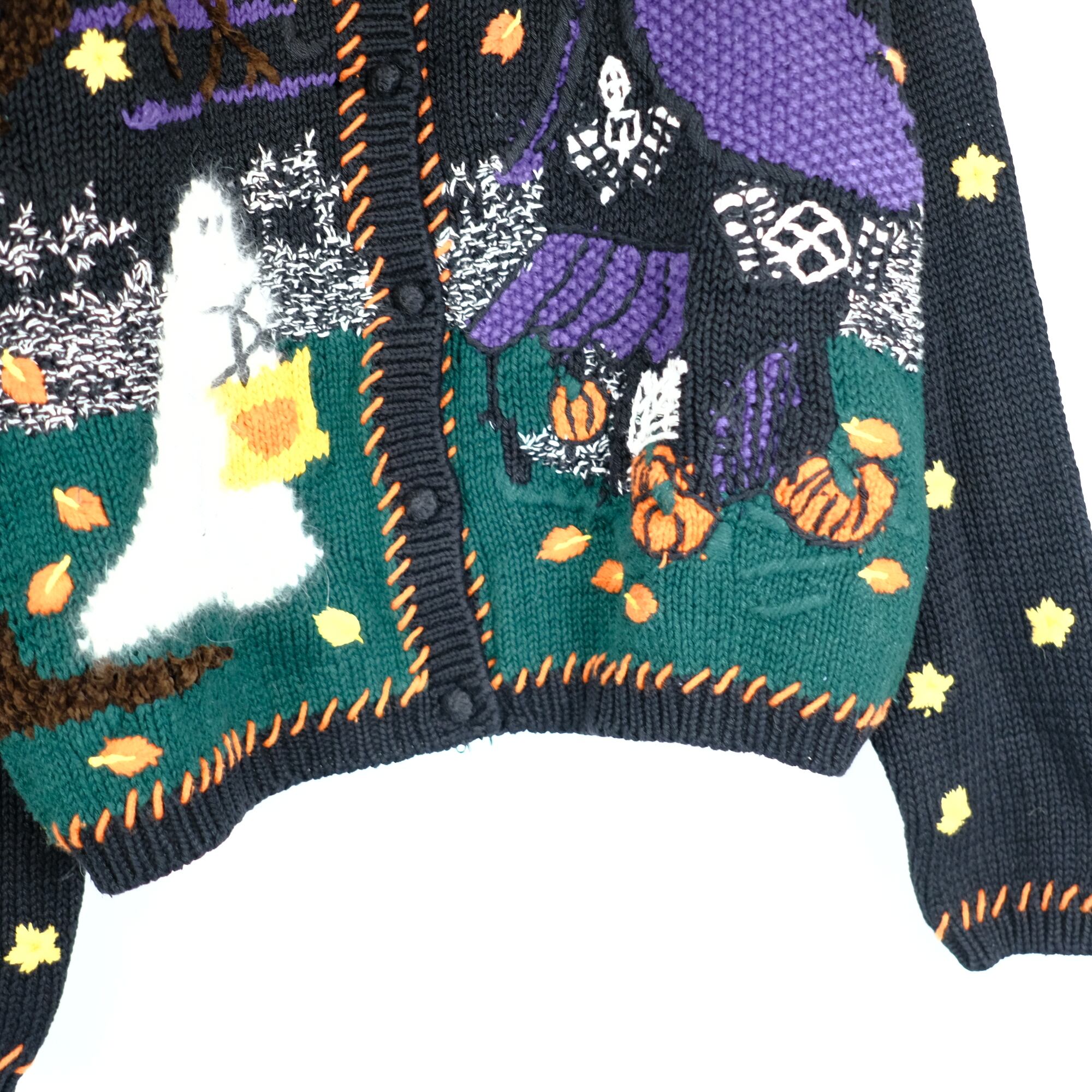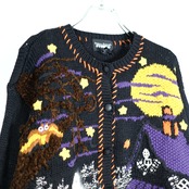 1990s ビンテージ 刺繍 ハンドニットカーディガン セーター 古着屋 総柄