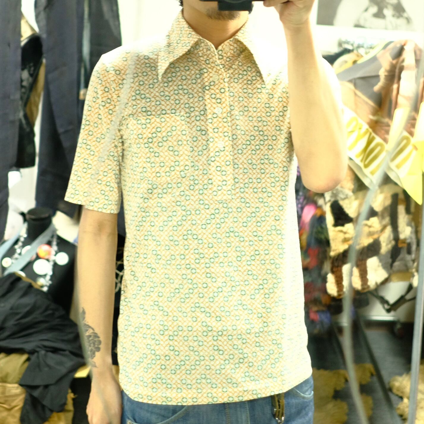 1970s ビンテージ 総柄ポロシャツ 半袖 幾何学模様 デザイン 古着屋