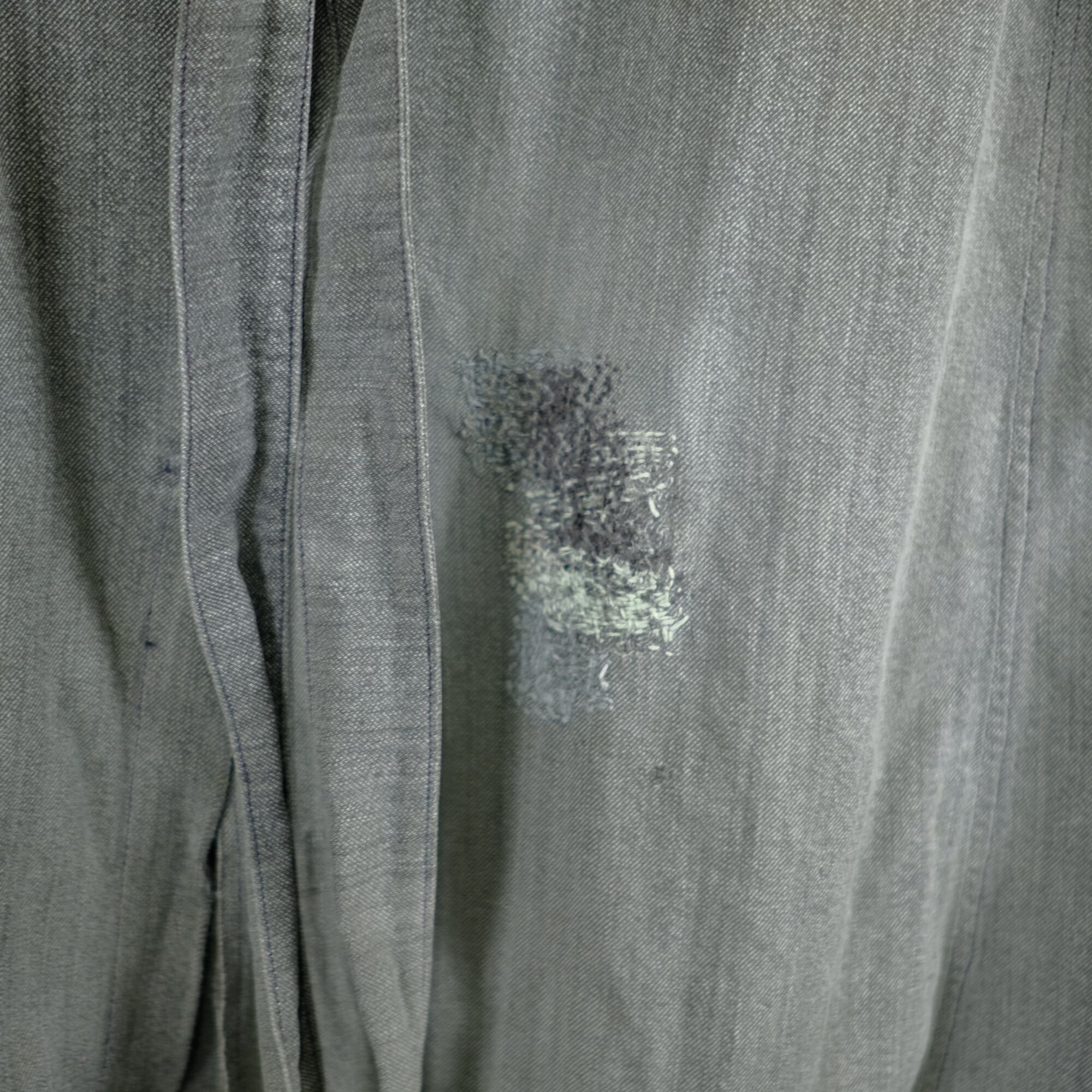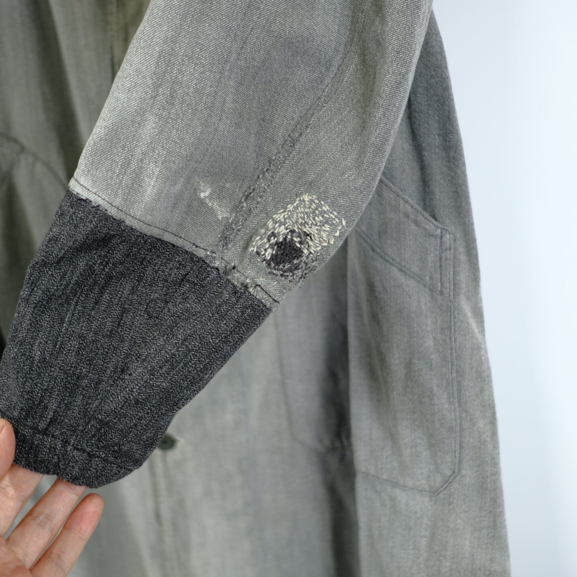 ダーニングステッチやパッチワークなどのリペアが有り、フランスらしい手直しが加わった温かみのあるコートです。