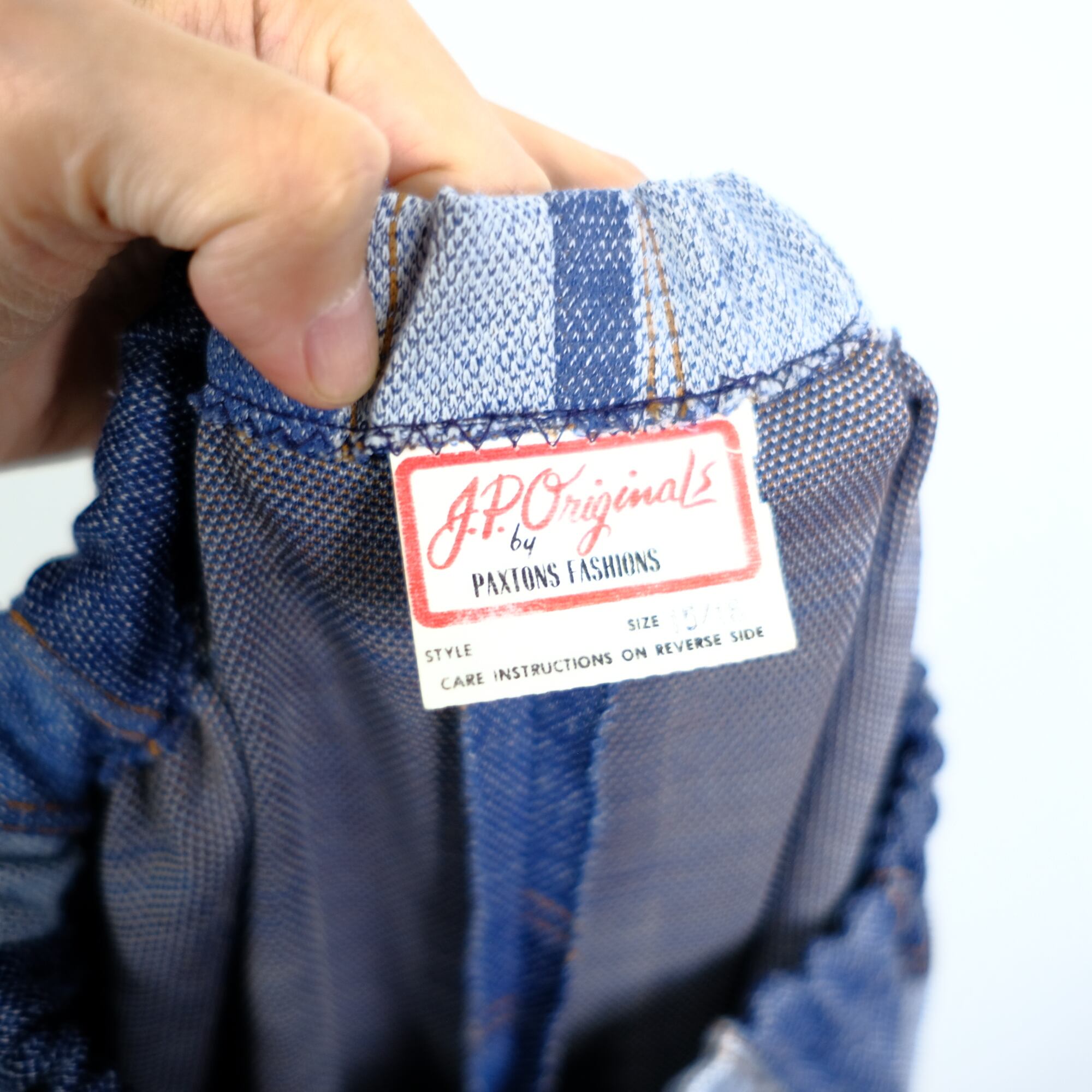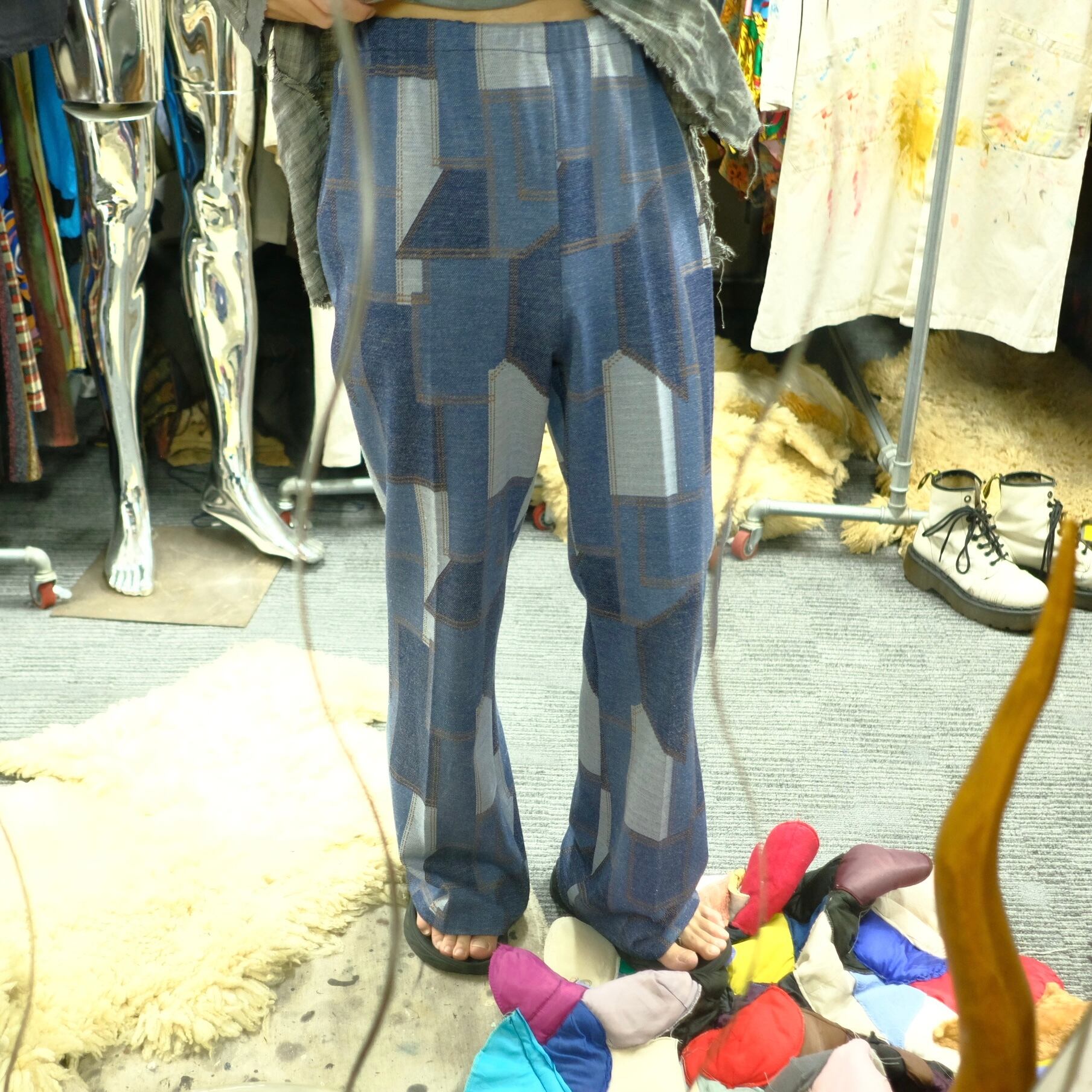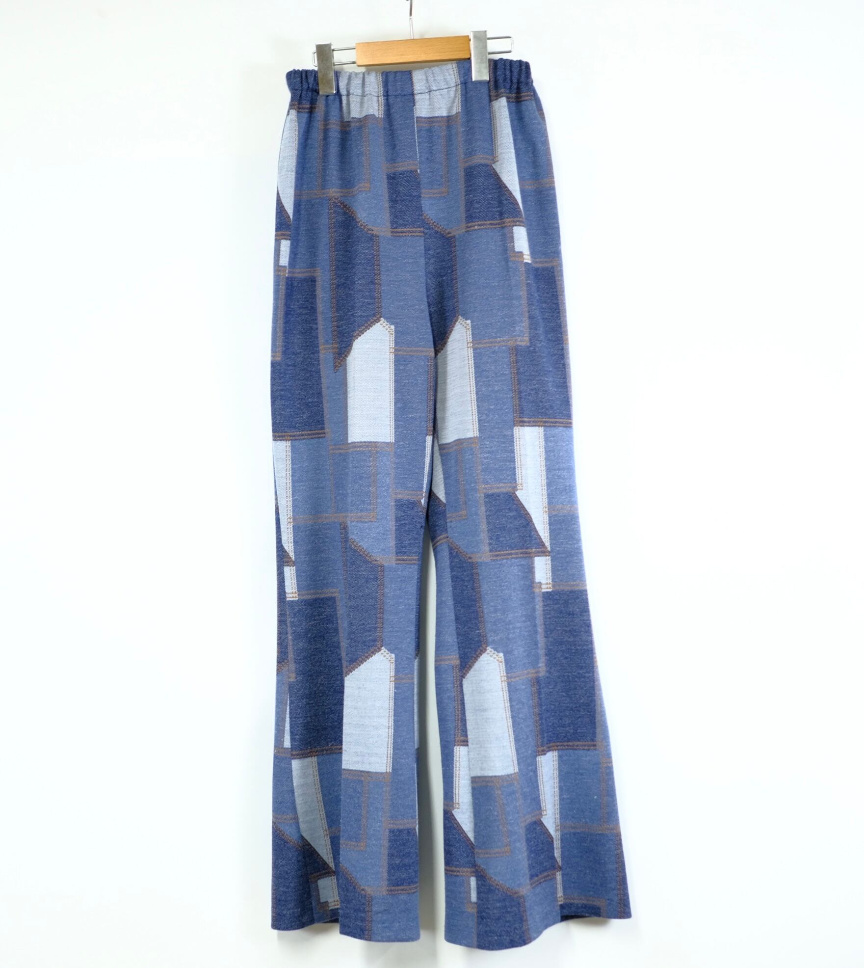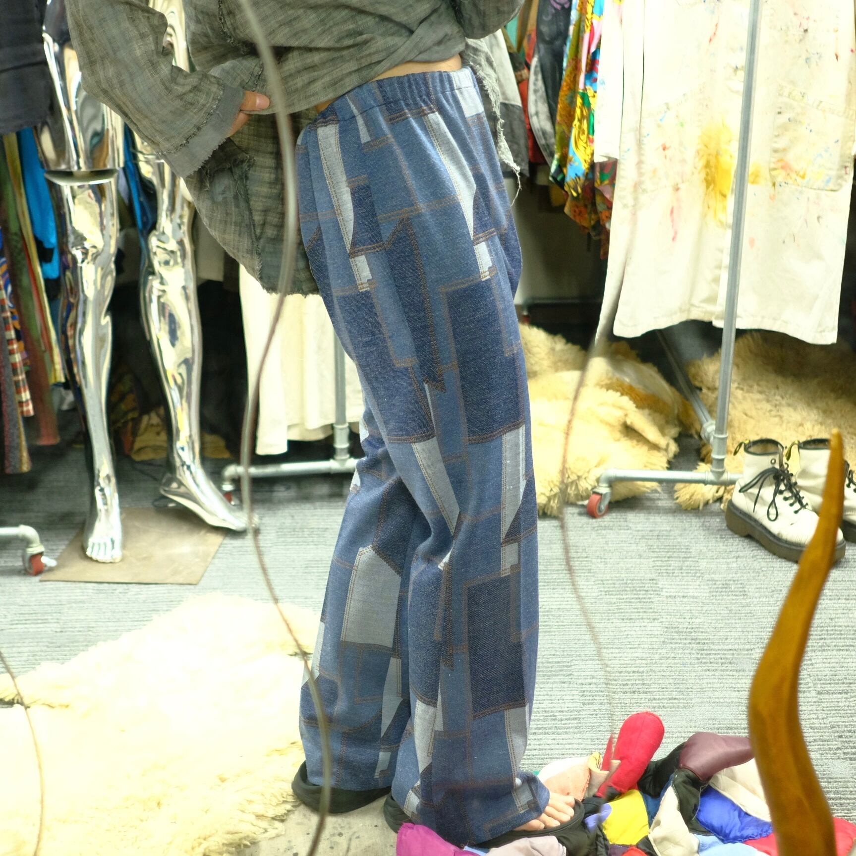 1970s ビンテージ パッチワークプリント ポリパンツ スウェット デニム