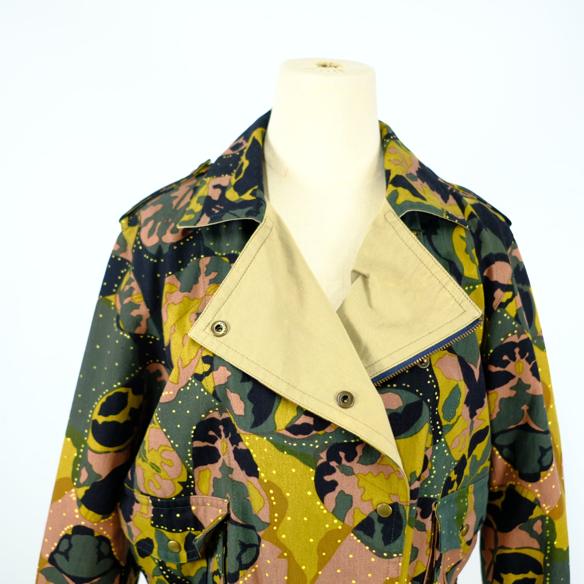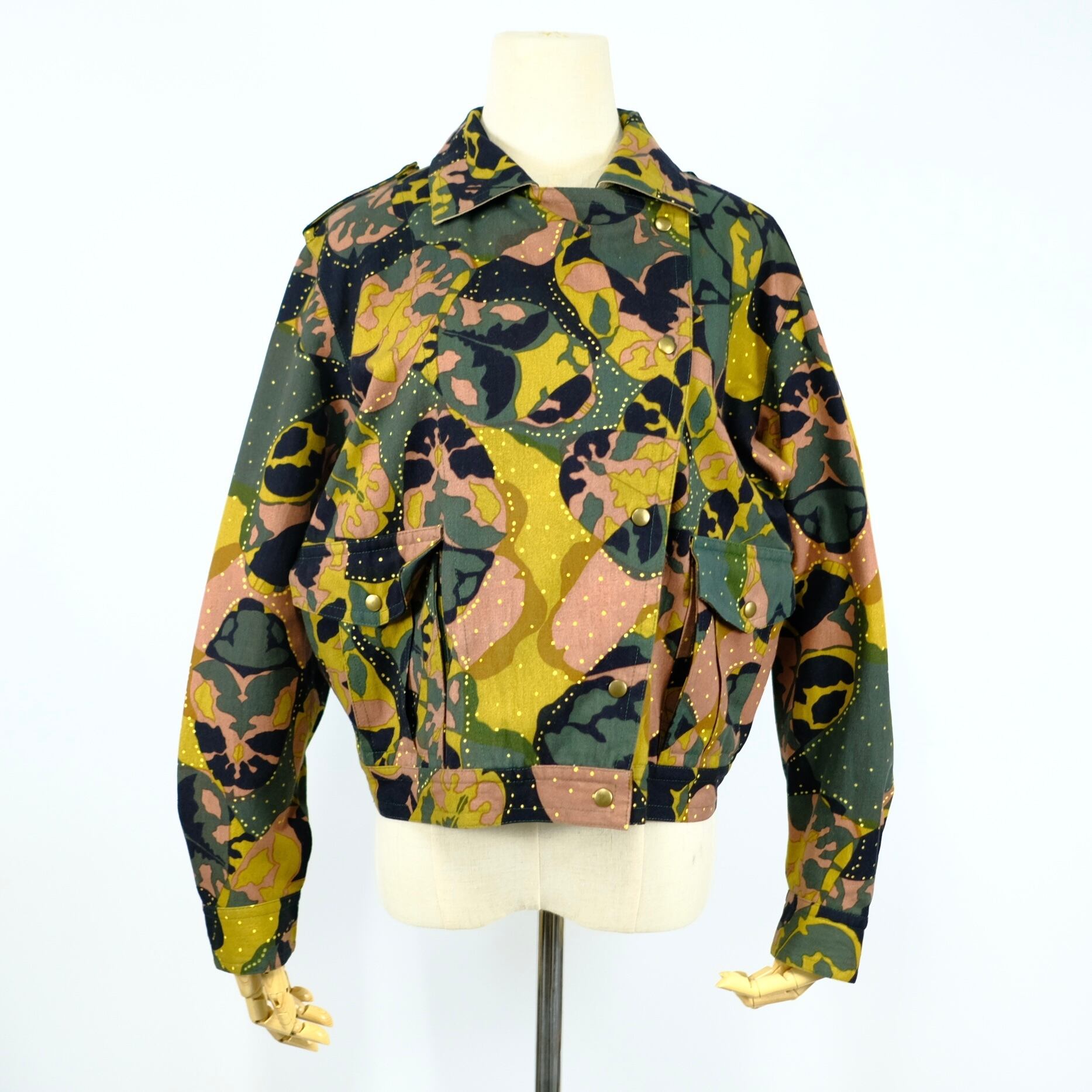 1980s 初期の山本寛斎のコットン総柄ライダースジャケット。