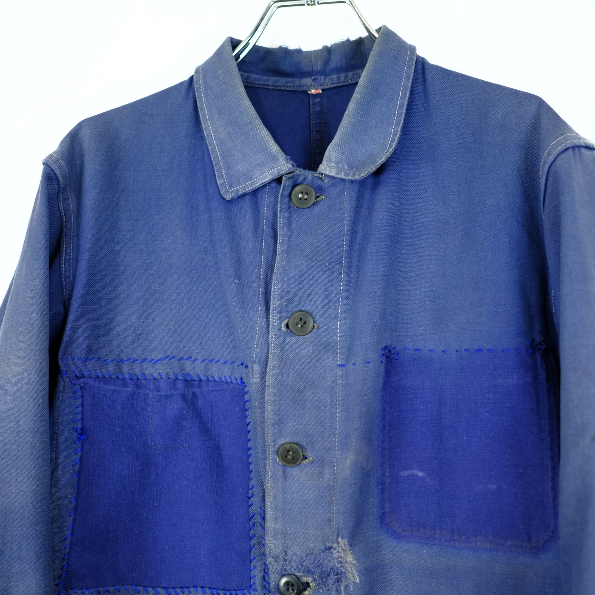 1950s フランス ビンテージ ワーク インディゴコットンジャケット 襤褸