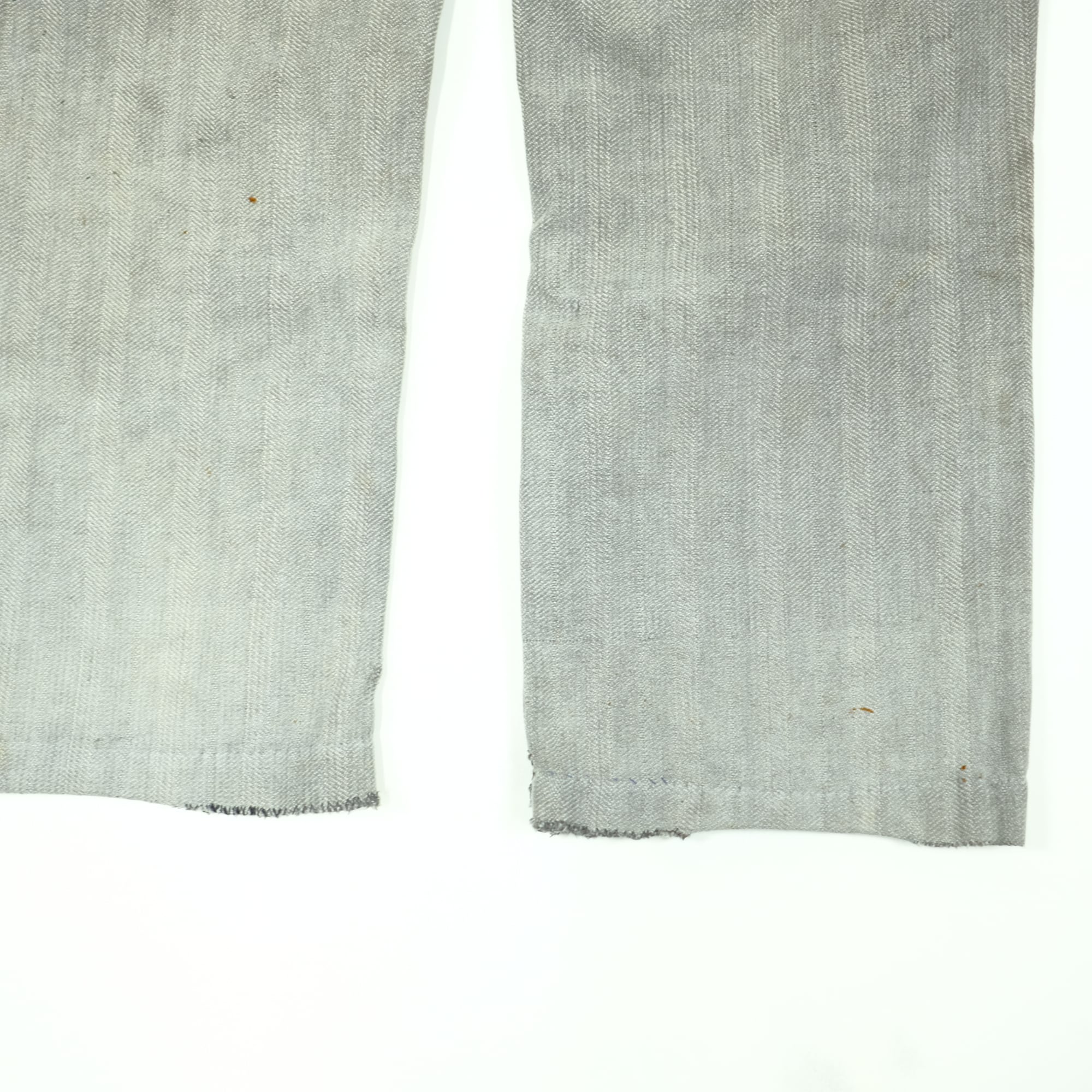 ベルトループが無く、サスペンダーボタン、バックルパックがつく古いディテール。
