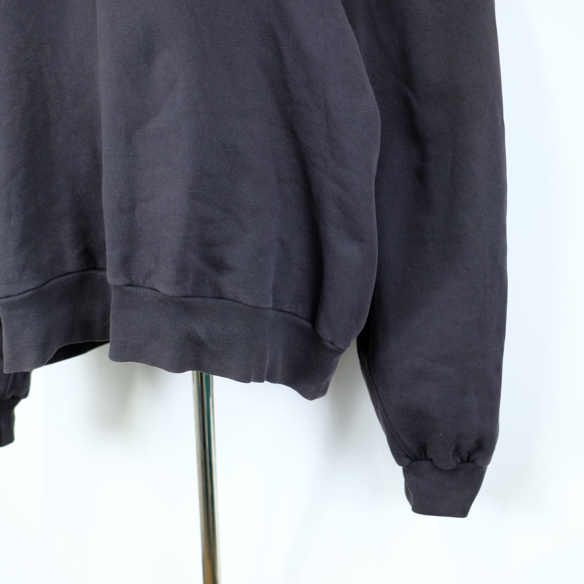 程よいゆとりのあるドロップショルダーで、身幅が大きくショート丈のオーバーサイズシルエットとなります。