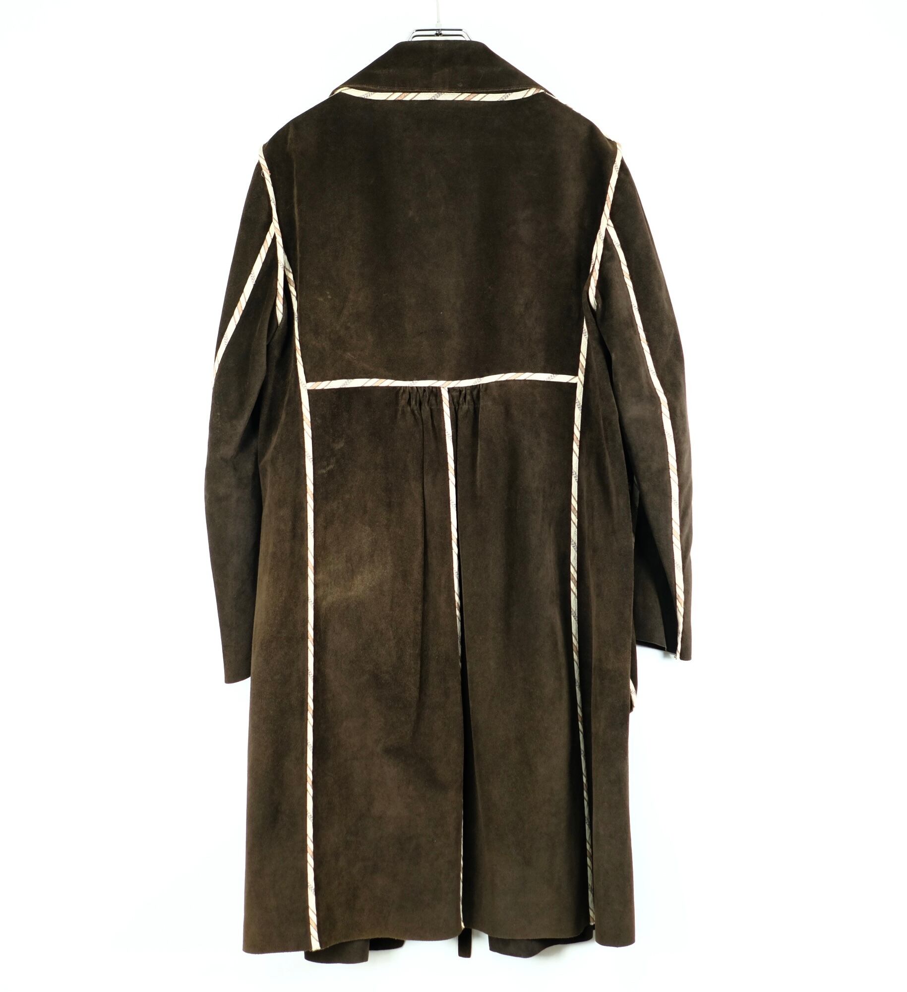 深みのあるダークブラウンのスエード生地に、アイボリー系のストライプパイピングが施された、マルニらしい遊び心と高級感が同居する一着です。