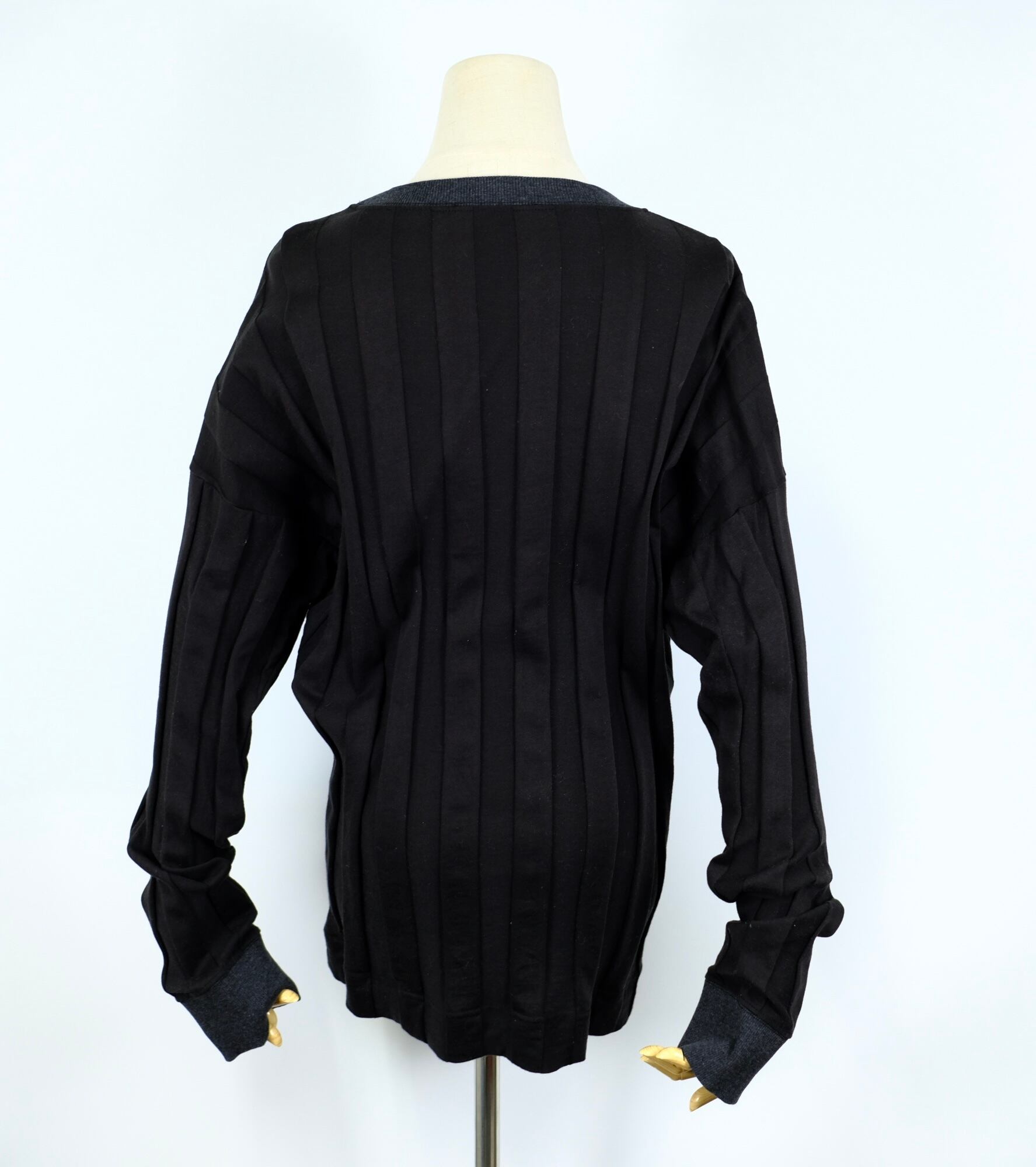 襟元と袖口はリブ切替になっており、ヴィヴィアンらしい計算された変形シルエットが楽しめる一着です。