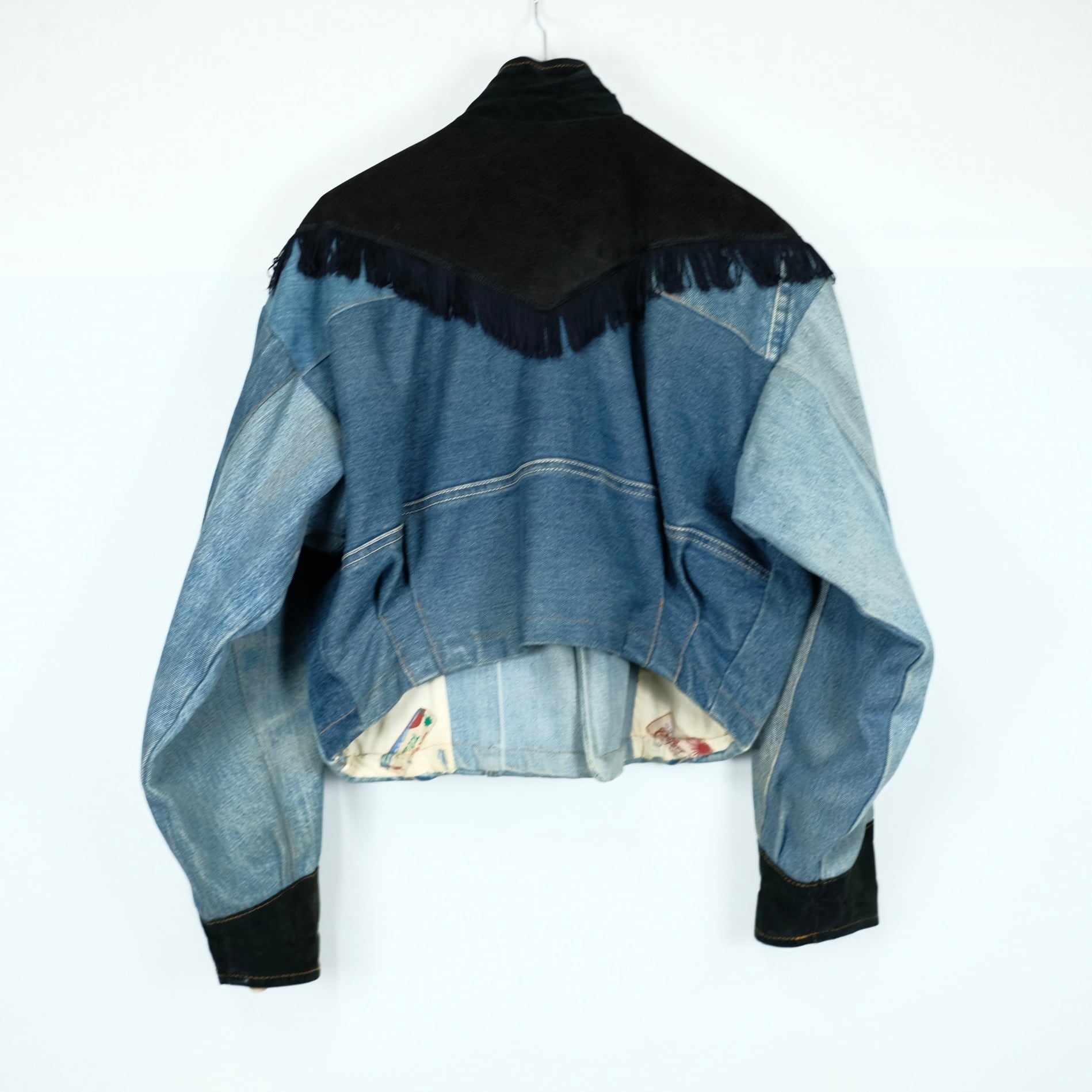 肩周りと袖先にはブラックのヌバック(スエード)生地を使用。ウエスタンヨークの切り替えに沿って細かなフリンジが施されています。