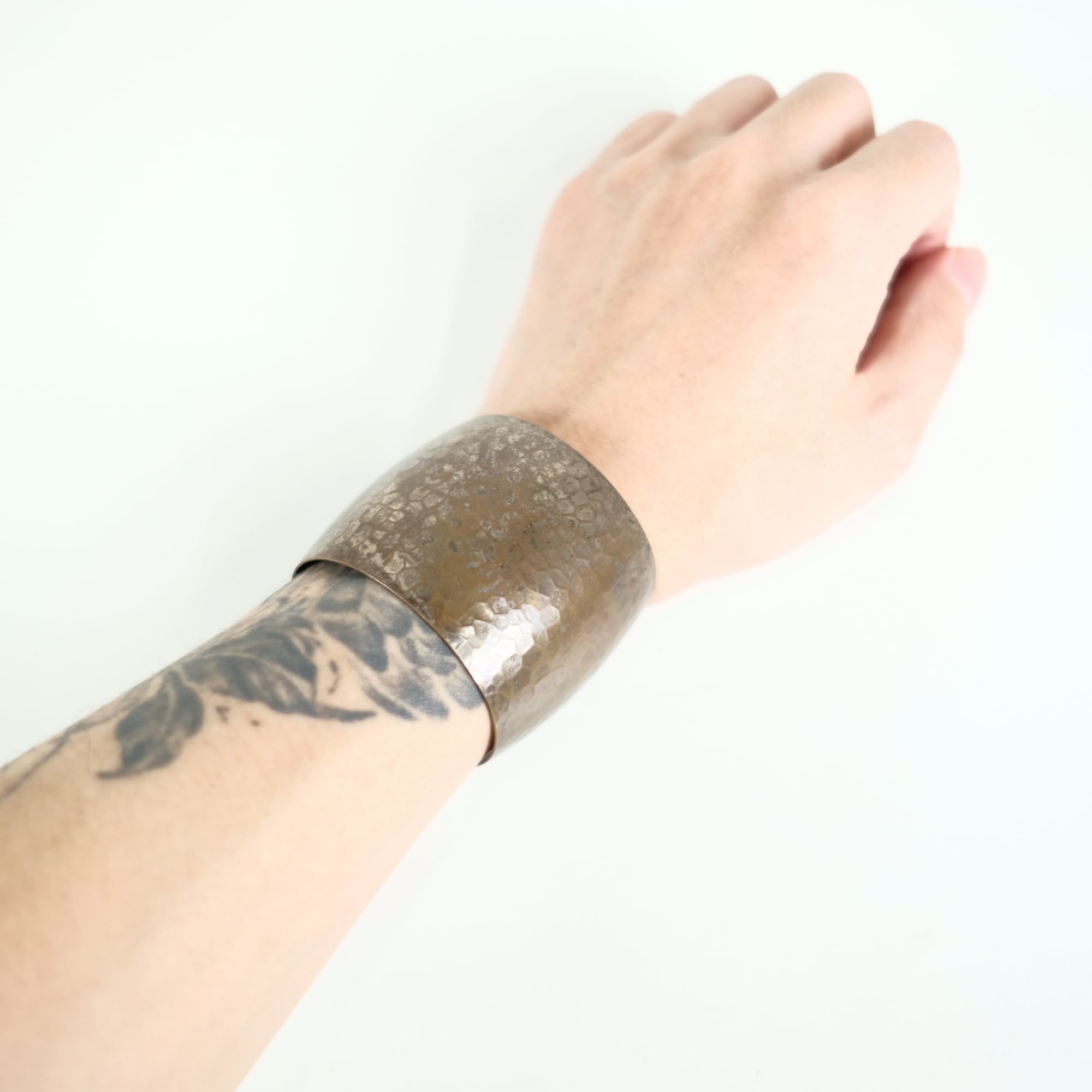 経年による深みのある質感が特徴的な、ビンテージのワイドカフバングルです。
