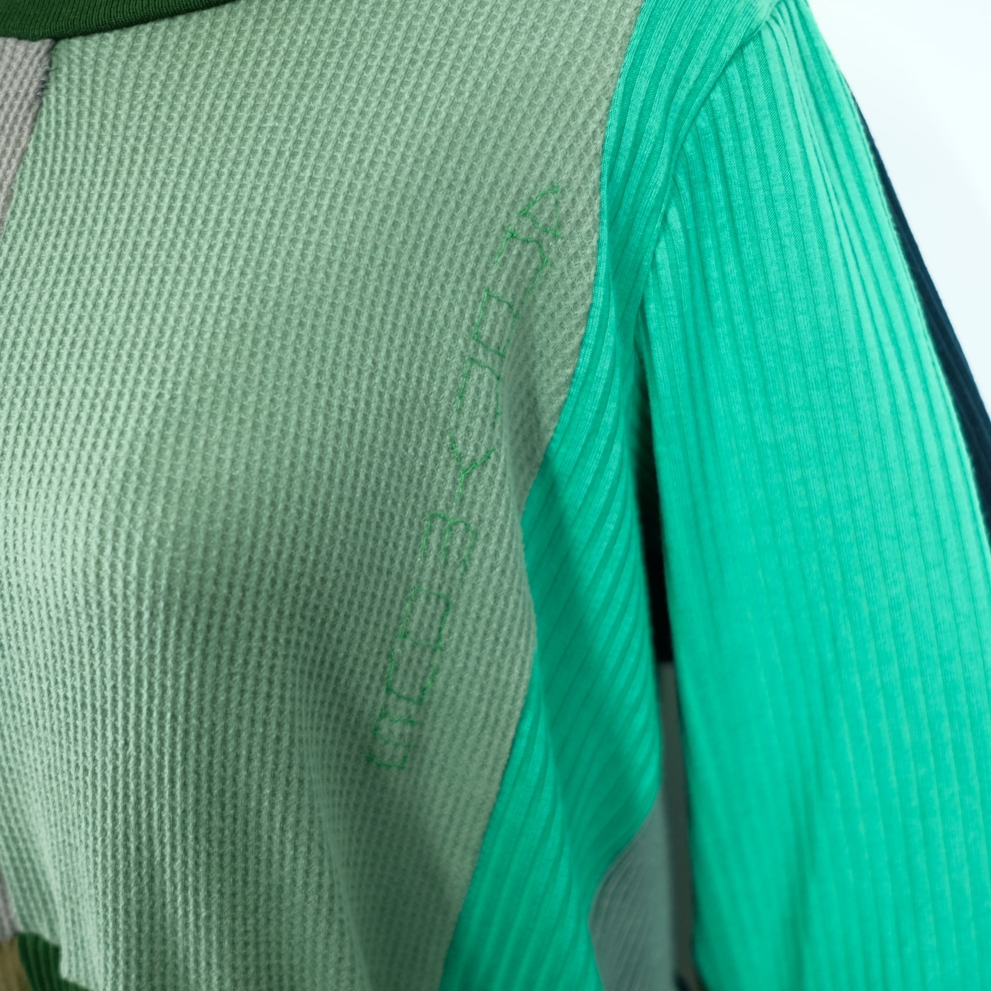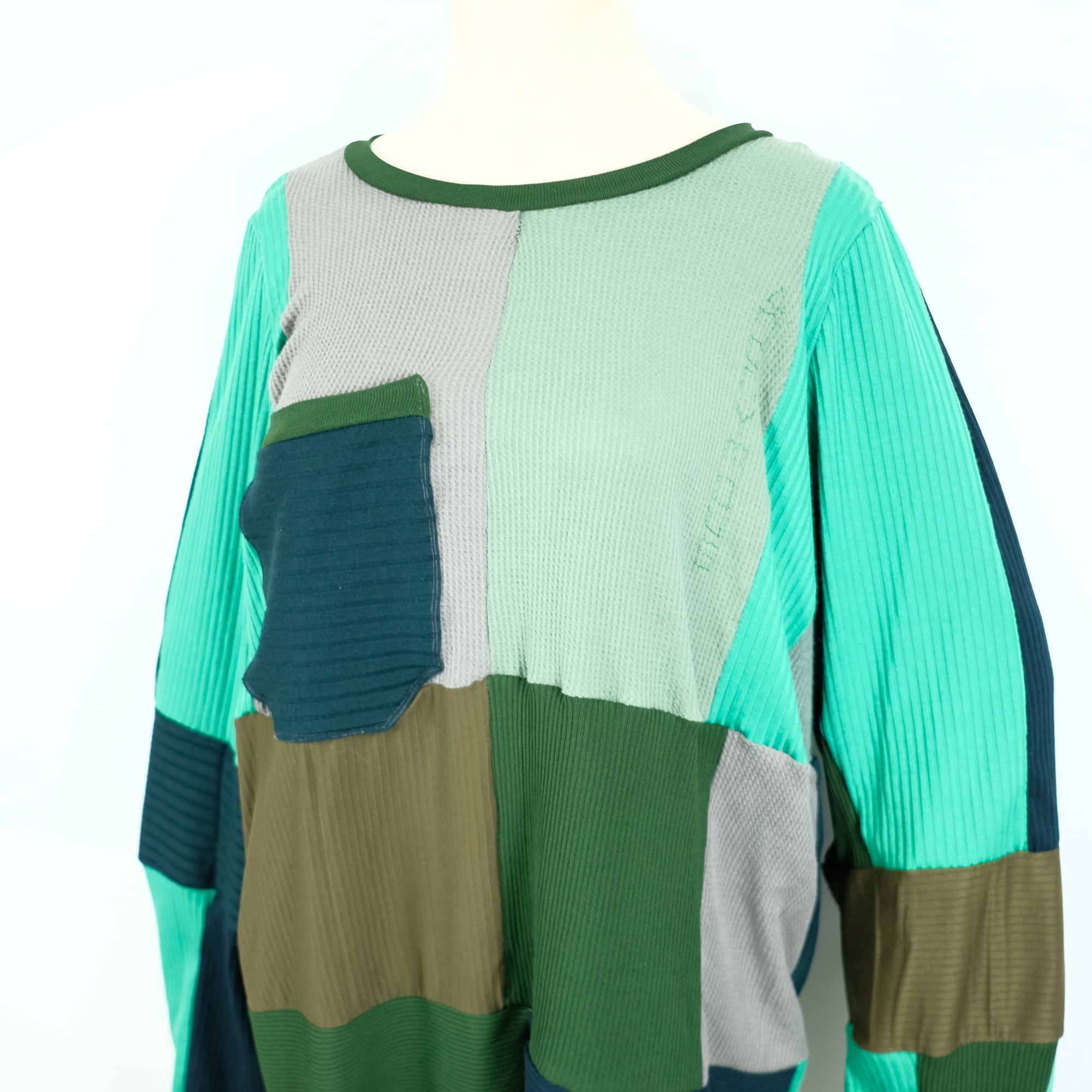 This piece is a handmade reconstruction of a vintage knit garment.