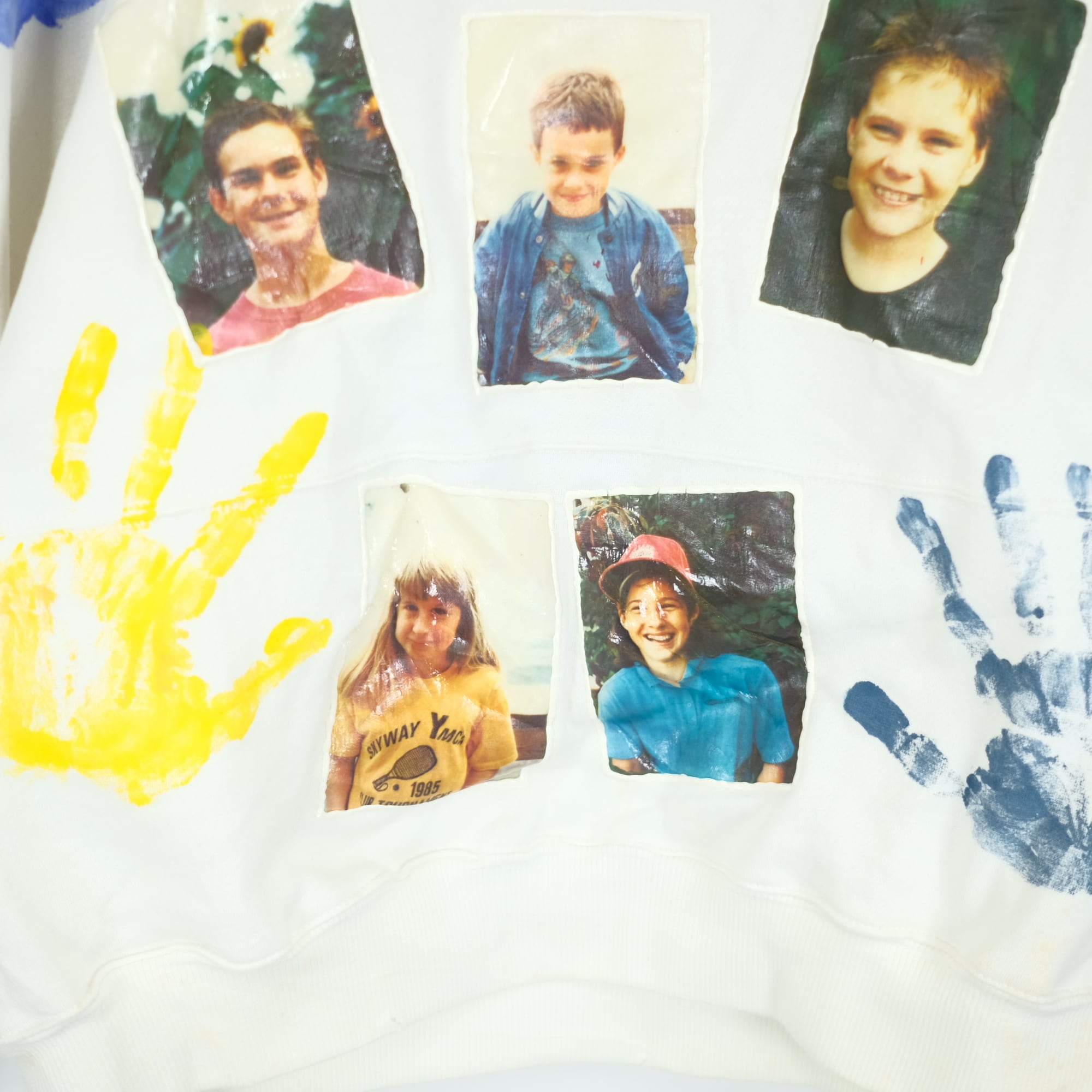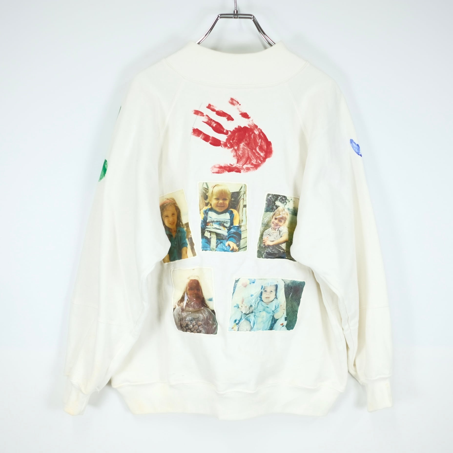 最大の特徴は、フロントとバックに贅沢に施された家族写真と思われる転写フォトプリント。