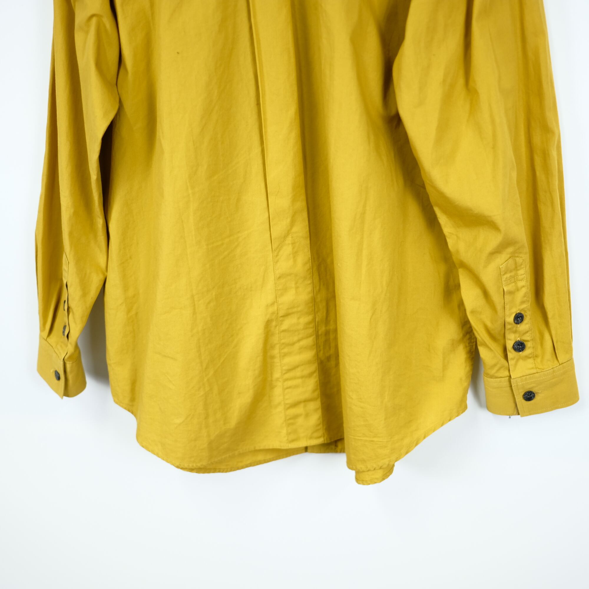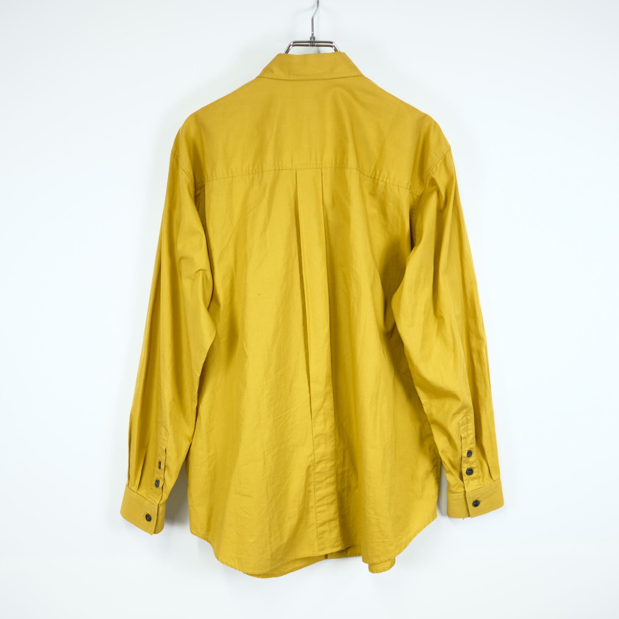 襟元はボタンダウン仕様、背面にはセンターボックスプリーツが入り、シルエットは当時らしいゆったりとしたボックスシルエットです。