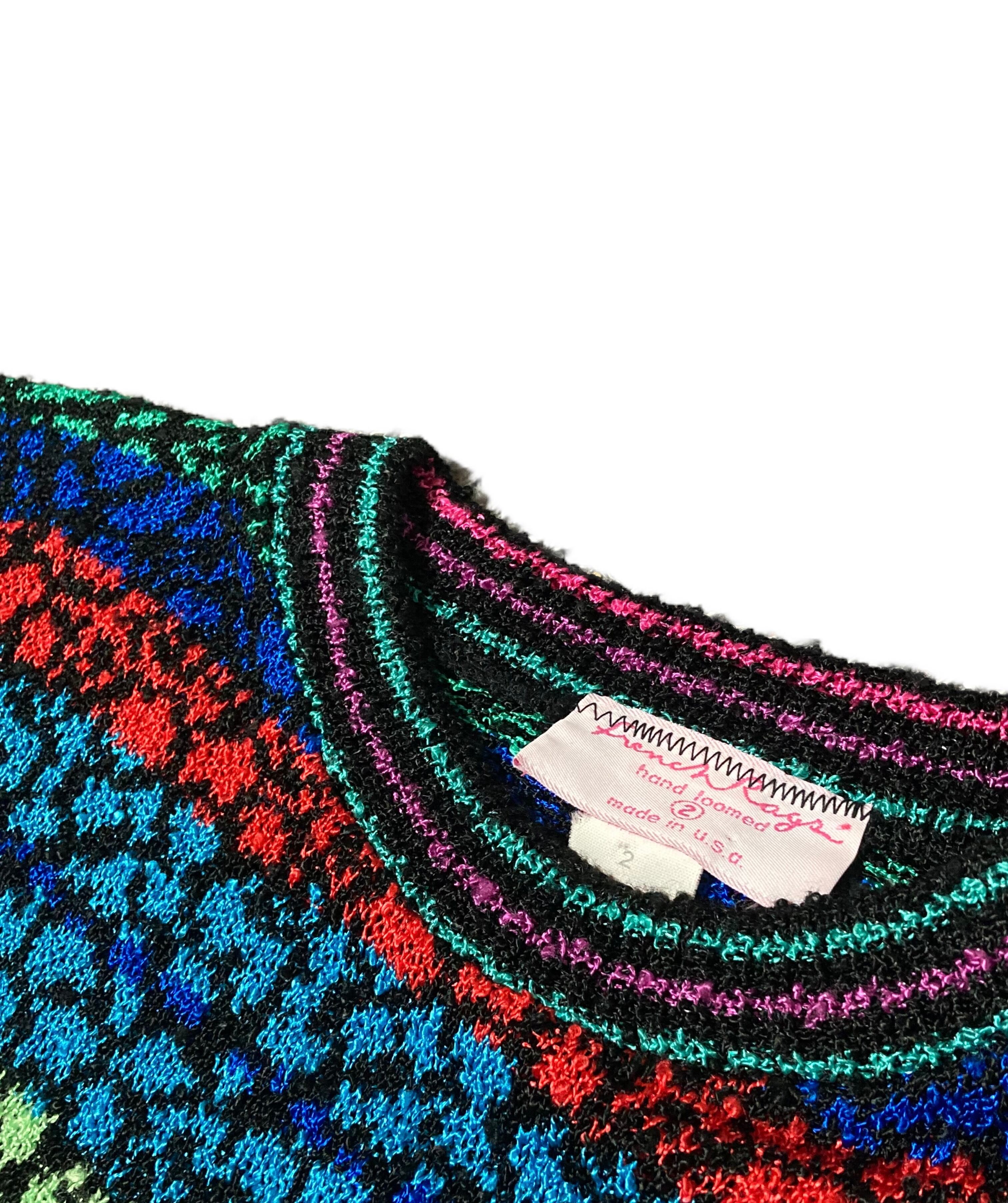 1980s USA製 デザイン レーヨンニットセーター カラフル 総柄 古着