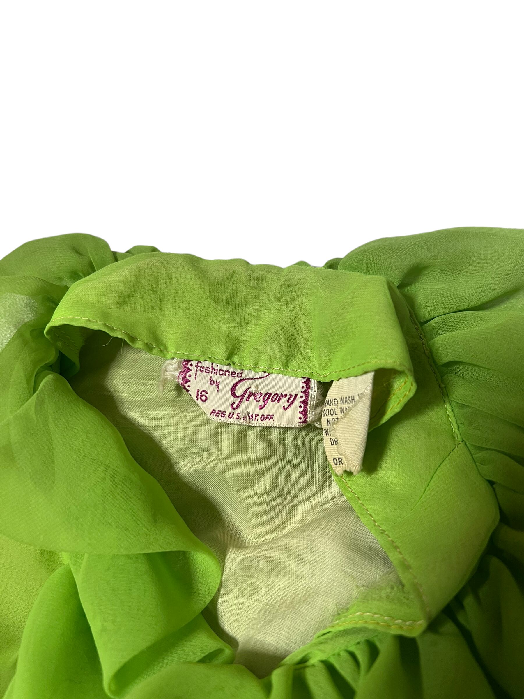 【1970s】ビンテージ フリルシャツシャツ シースルー 古着 ユーロ 緑