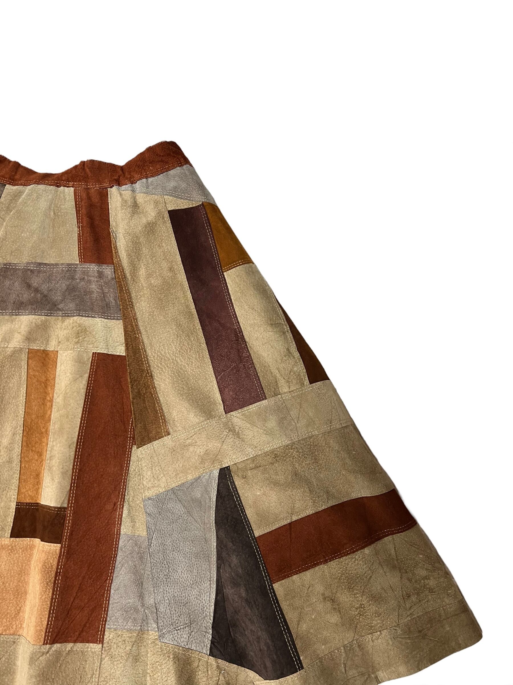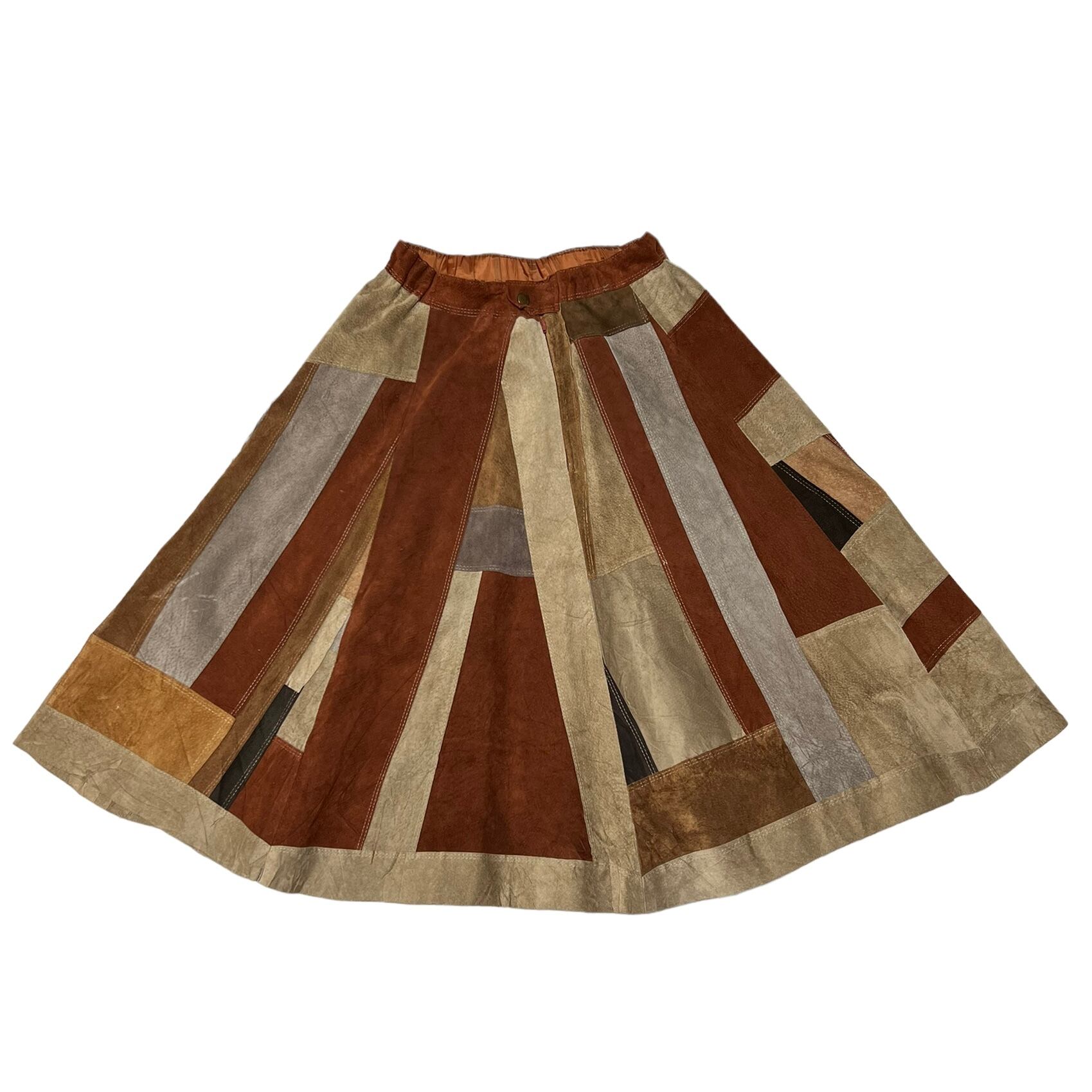 【1980s】ビンテージ ハードパッチワーク レザースカート 古着 スウェード