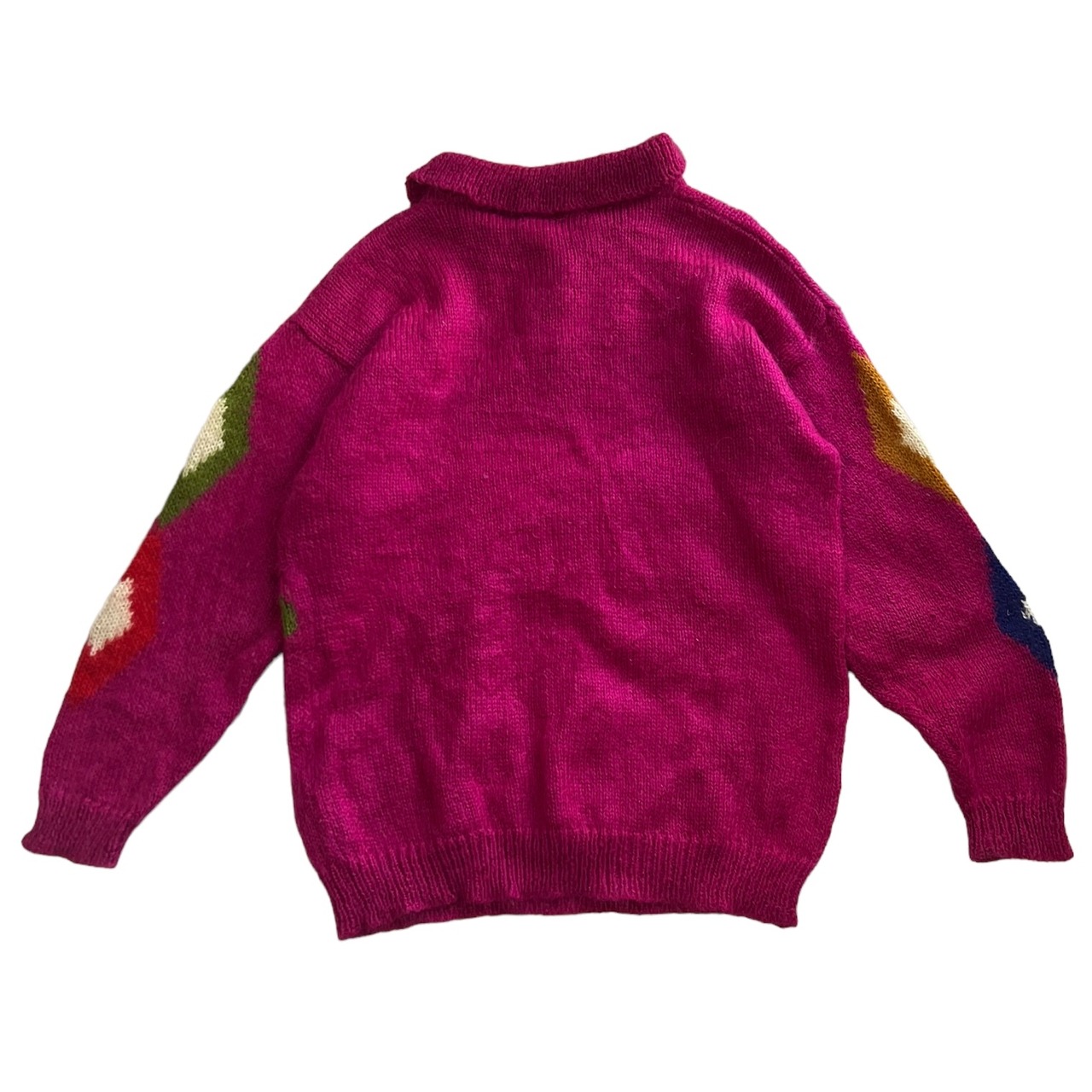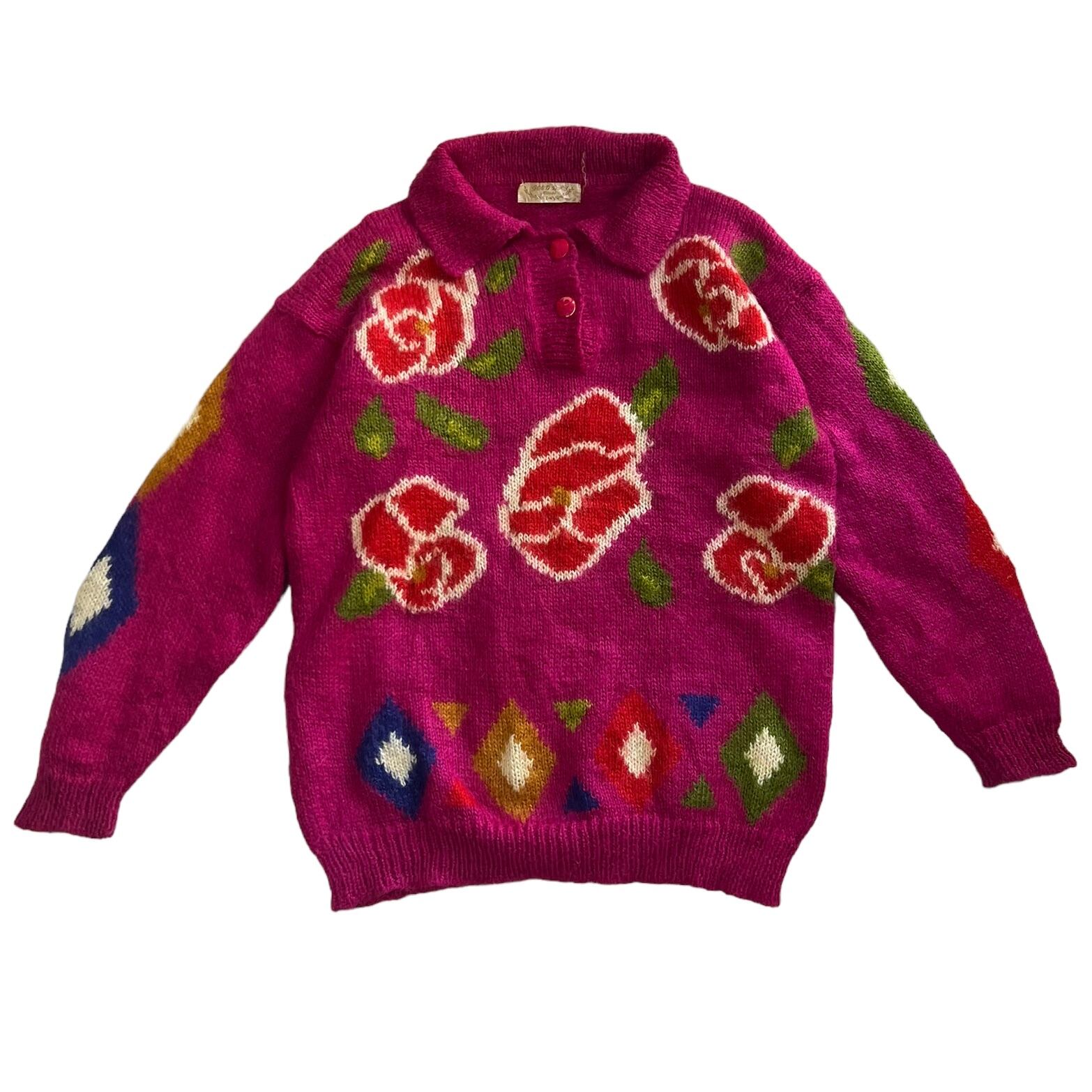 【1970s】ビンテージ モヘア ニットポロ セーター 古着 ユーロ 花柄