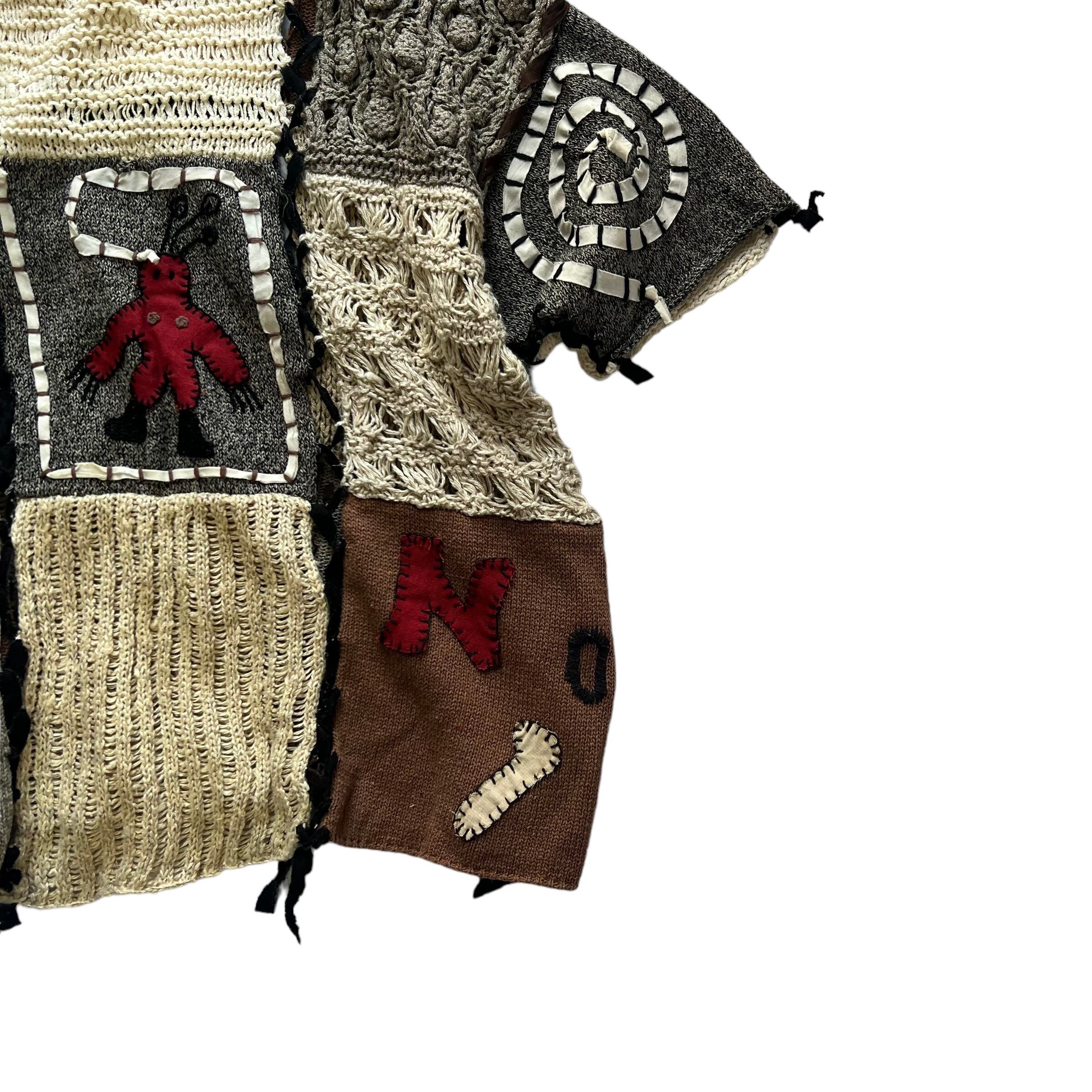 ハンドニットかつパッチワークと刺繍も全て手作業によるもの。