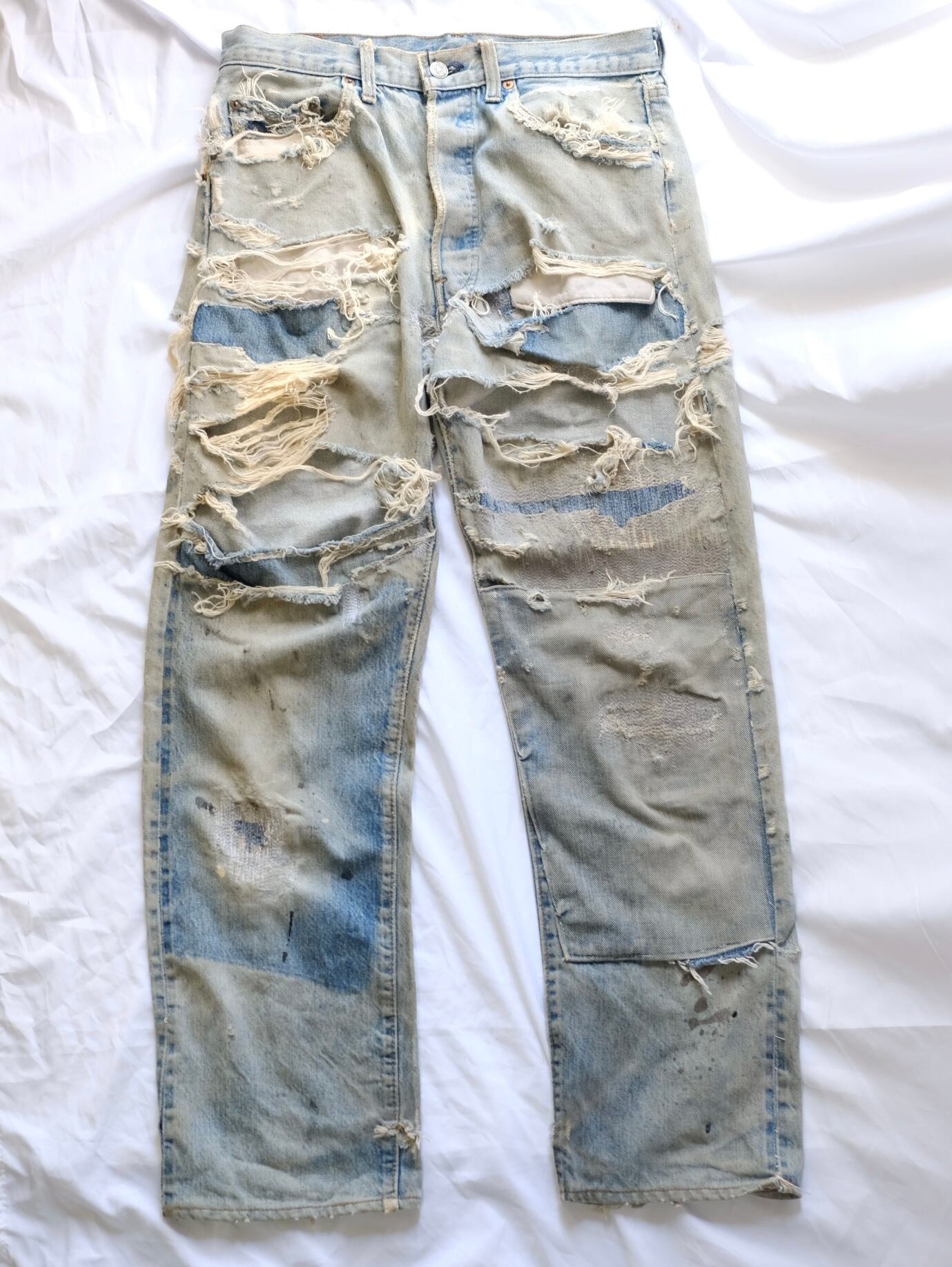 パッチワークとリペアとダメージが非常に多く、どこまで履き込まれてたんだ!といったようなもはや芸術品レベルのデニム。