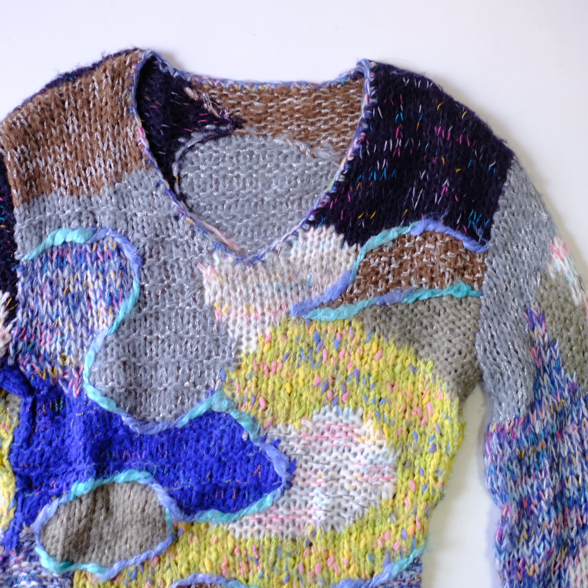 【1970〜80s】ビンテージ デザイン パッチワークニットセーター アート