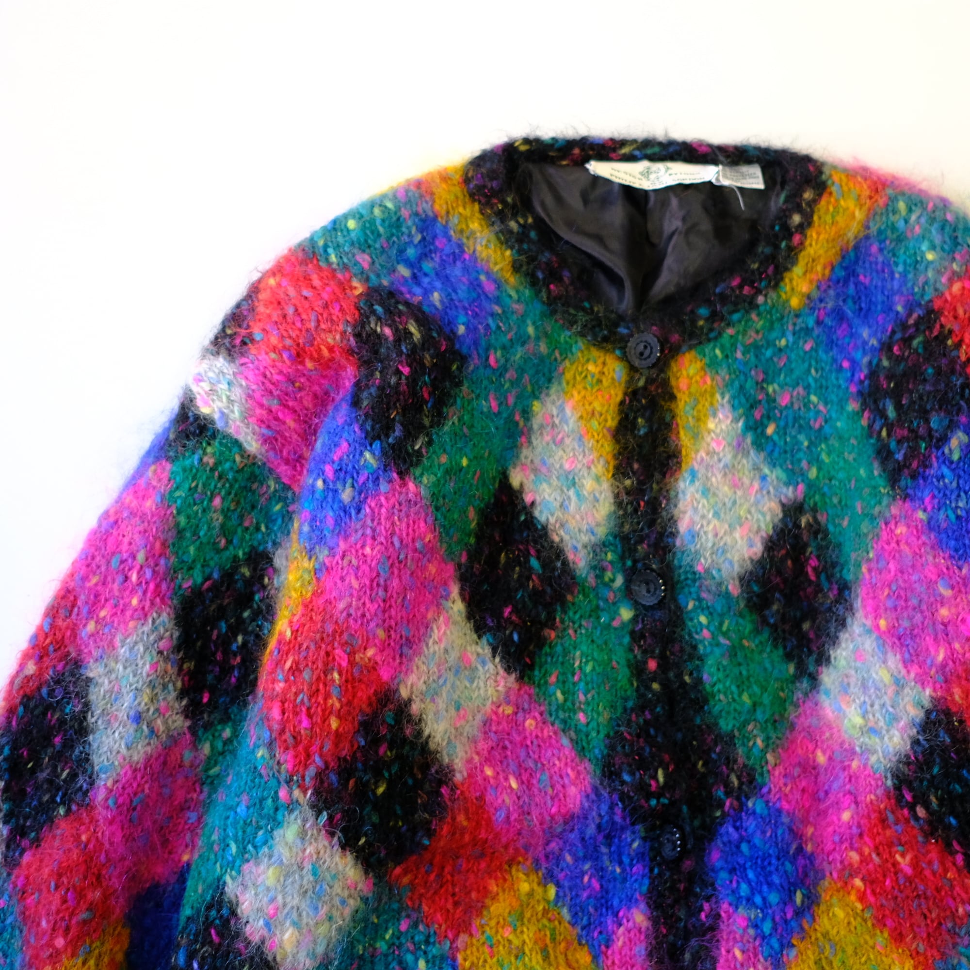 【1970〜80s】ビンテージ モヘア ダイヤ柄 ニットセーター カーディガン