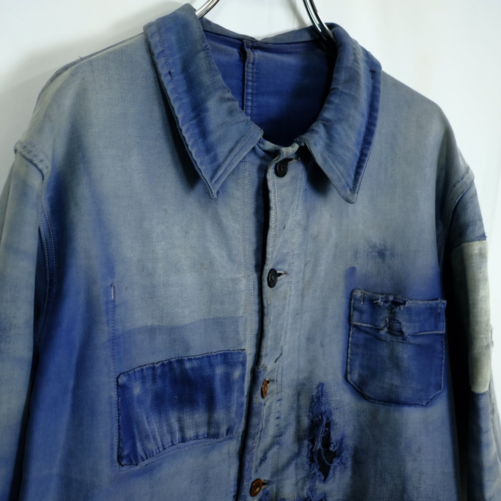 【1950s】ビンテージ フランス ワーク モールスキンジャケット パッチワーク