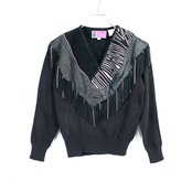 【1970s】ビンテージ レザー切り替え ニットセーター フリンジ 古着屋