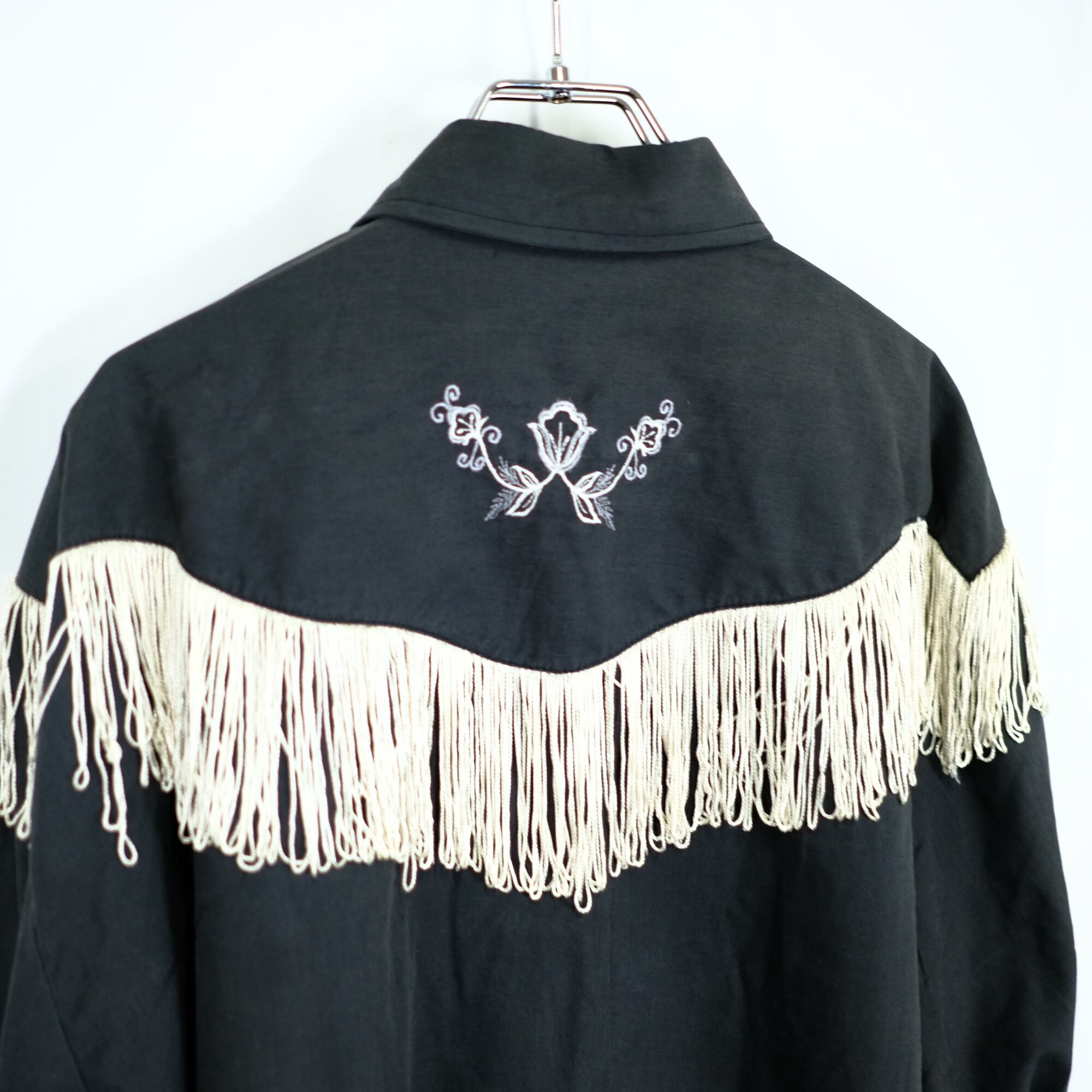 【1970s】ビンテージ フリンジ 刺繍 ウエスタンシャツ 黒 オーバーサイズ