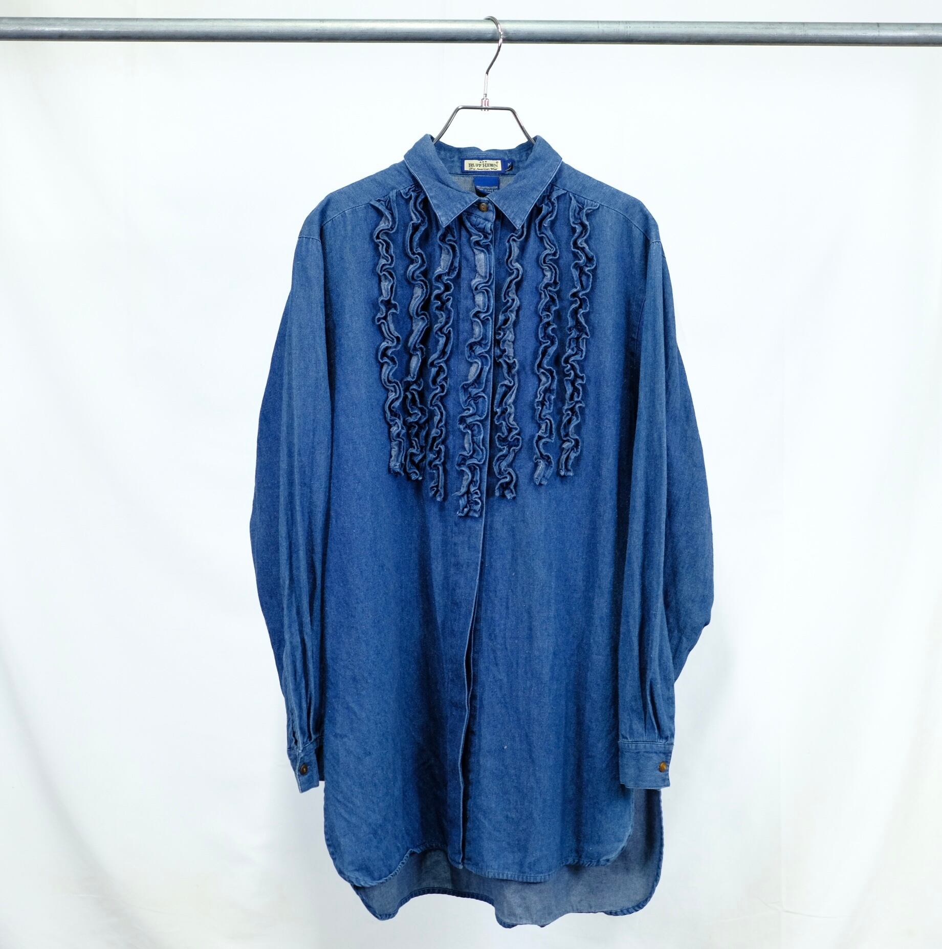 【1990s】ビンテージ フリルデニムシャツ インディゴ レアデザイン 古着屋