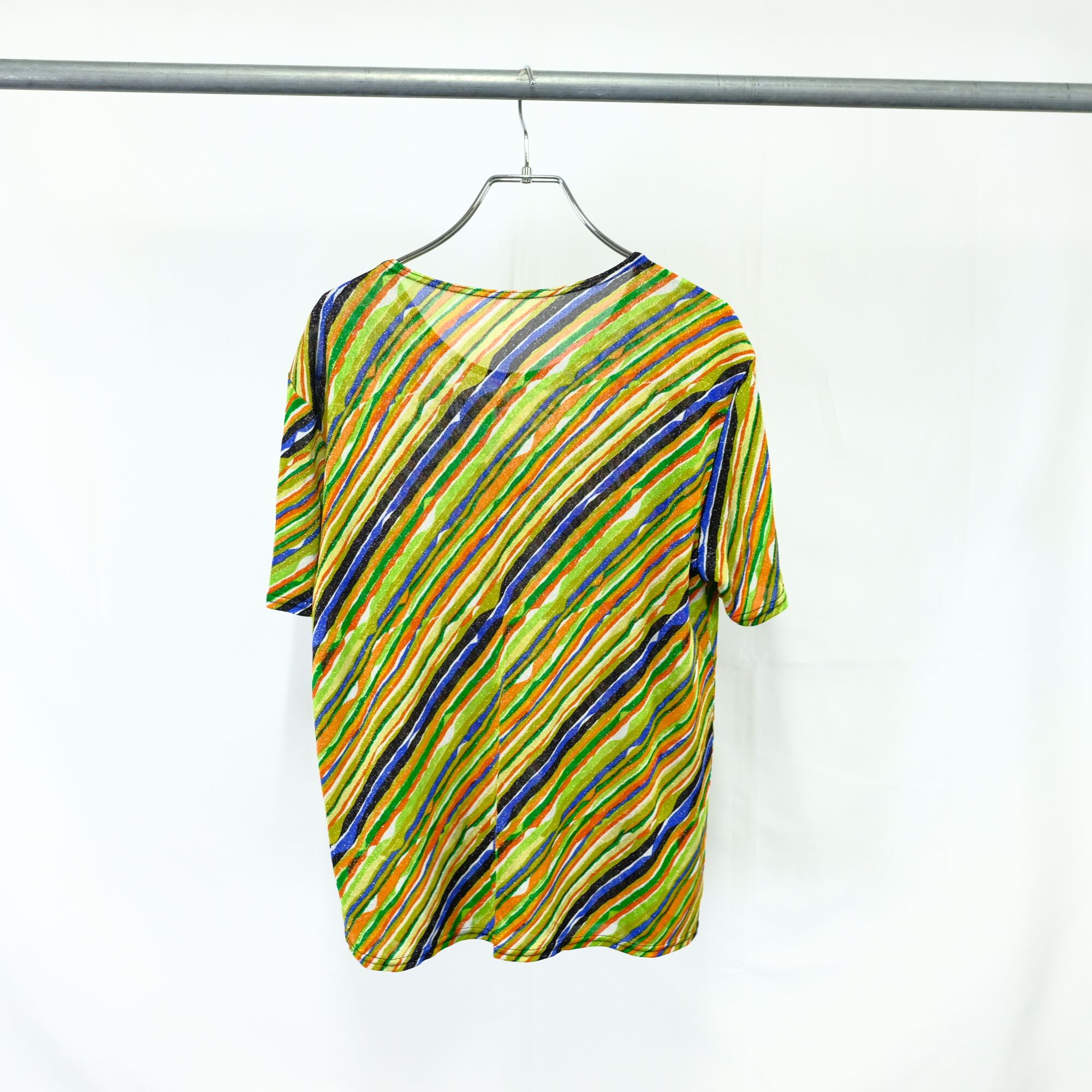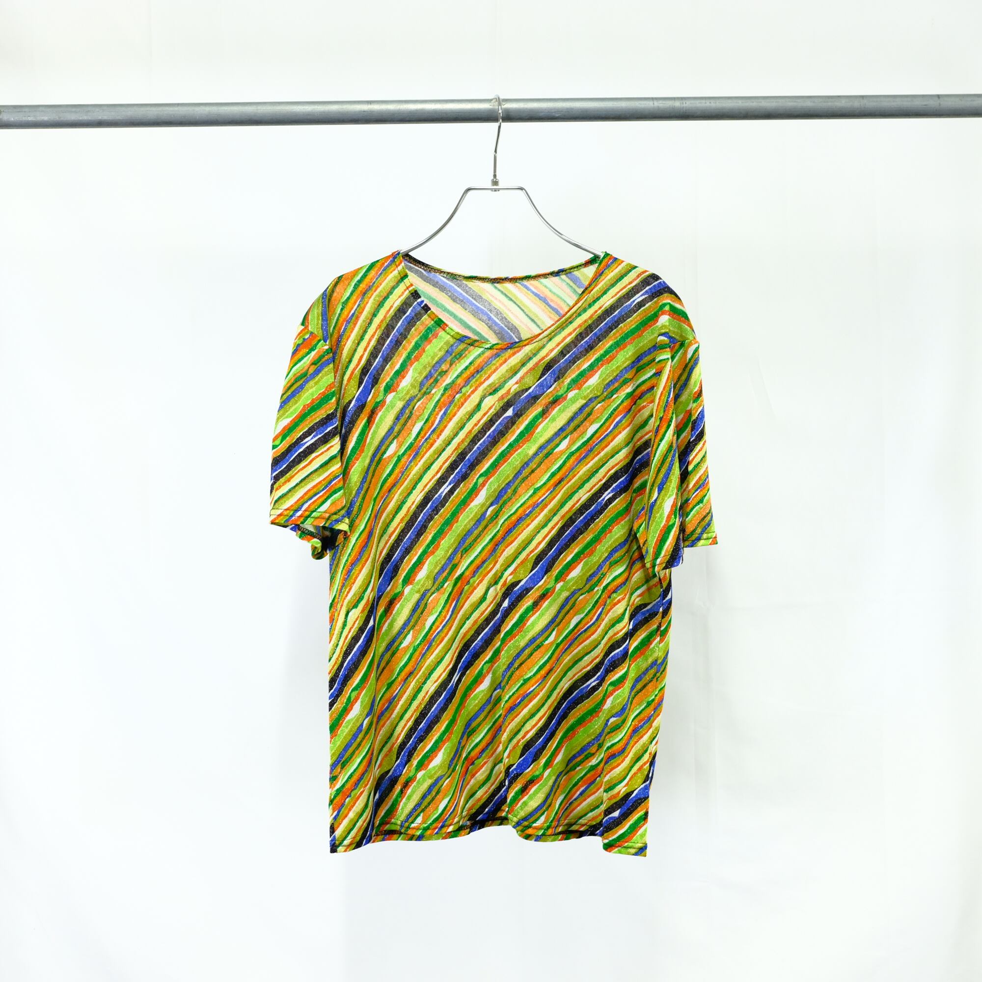 1980s ビンテージ アートデザイン 総柄Tシャツ 半袖ニット カラフル 古着