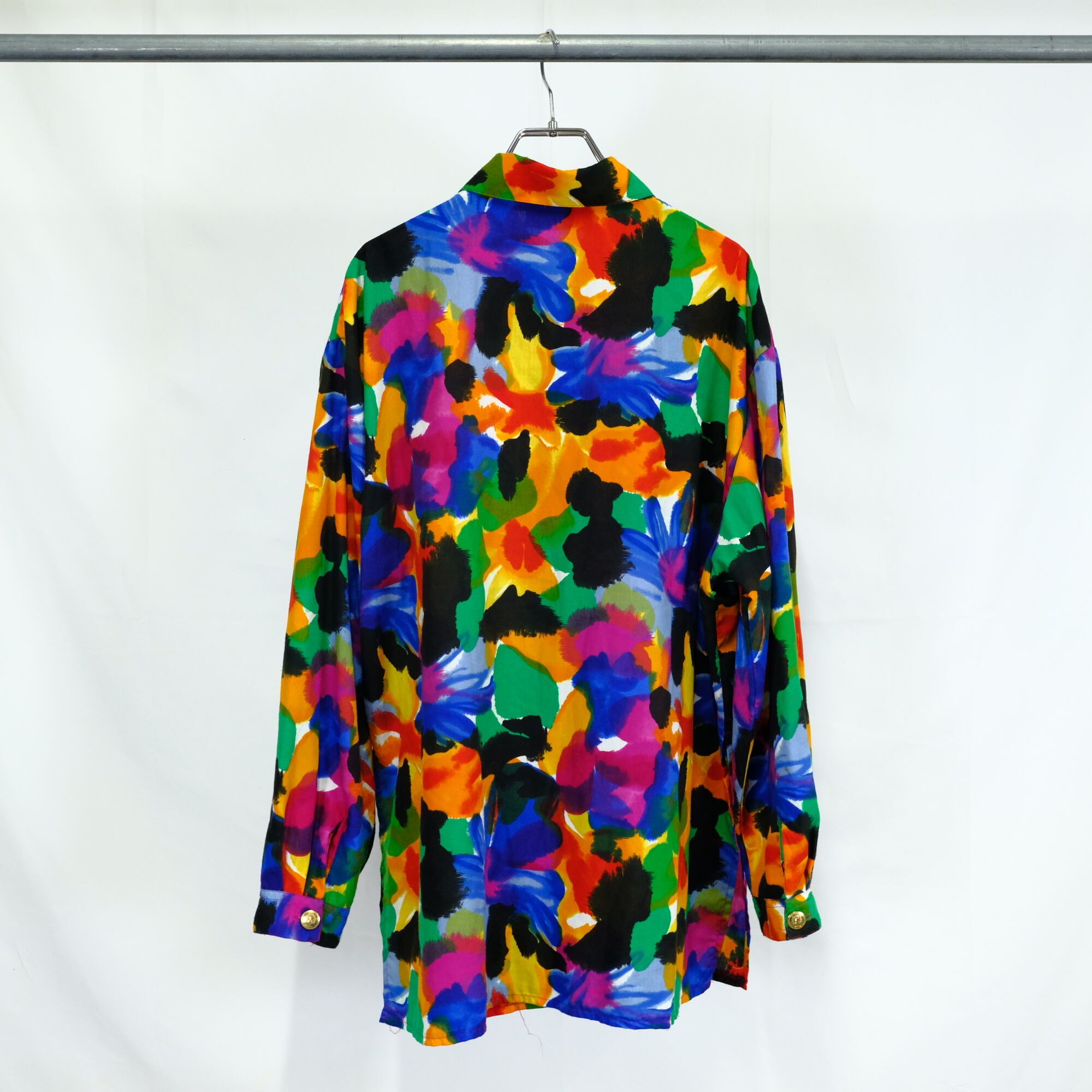 1980s ビンテージ 総柄アートシャツ 花柄 カラフル ユーロ フランス