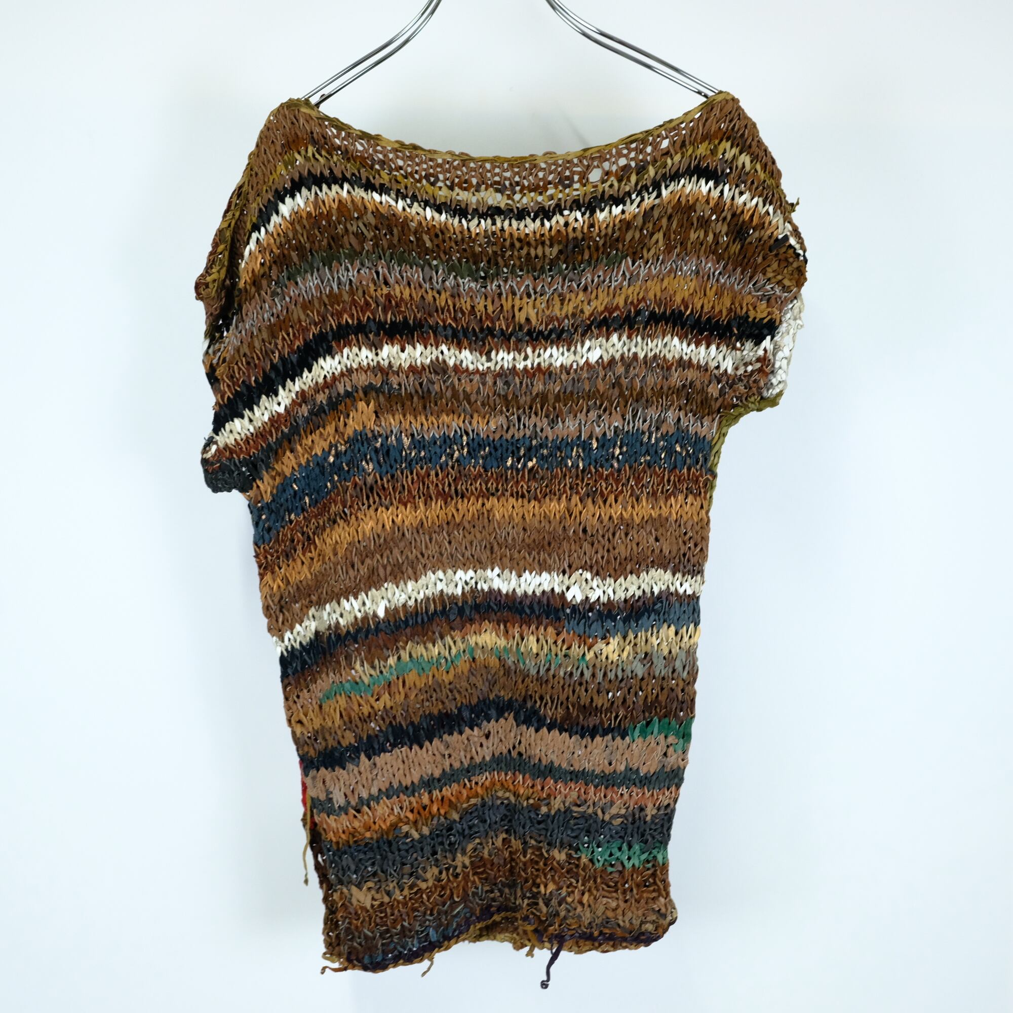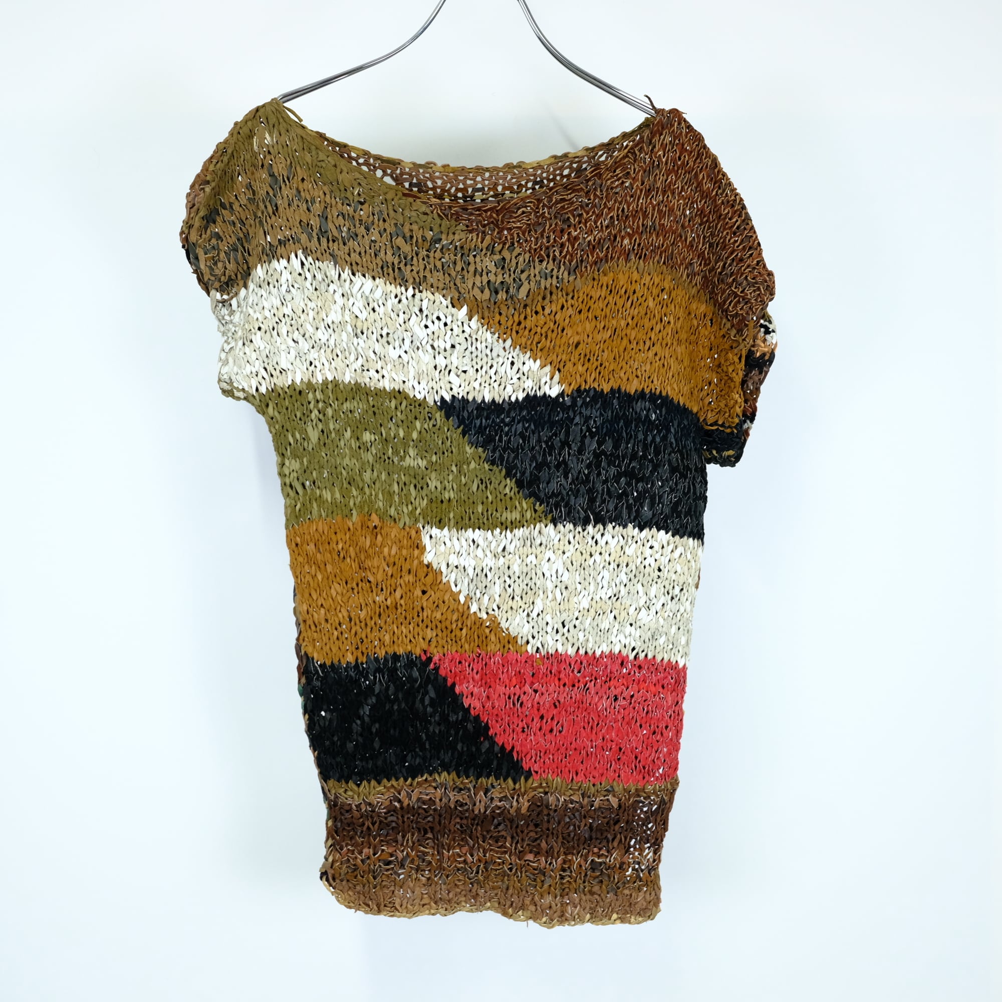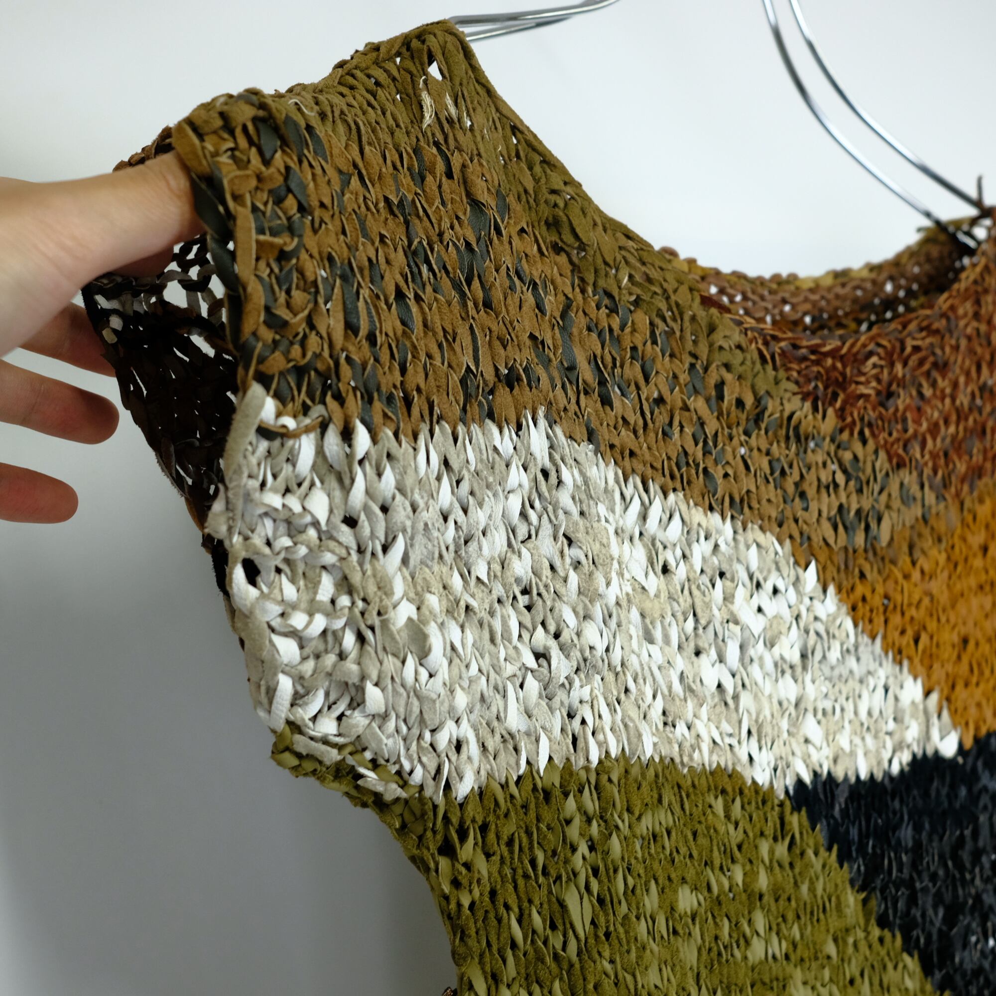 1970s ビンテージ レザーニット トップス 切り替え ユーロ 襤褸 ボロ