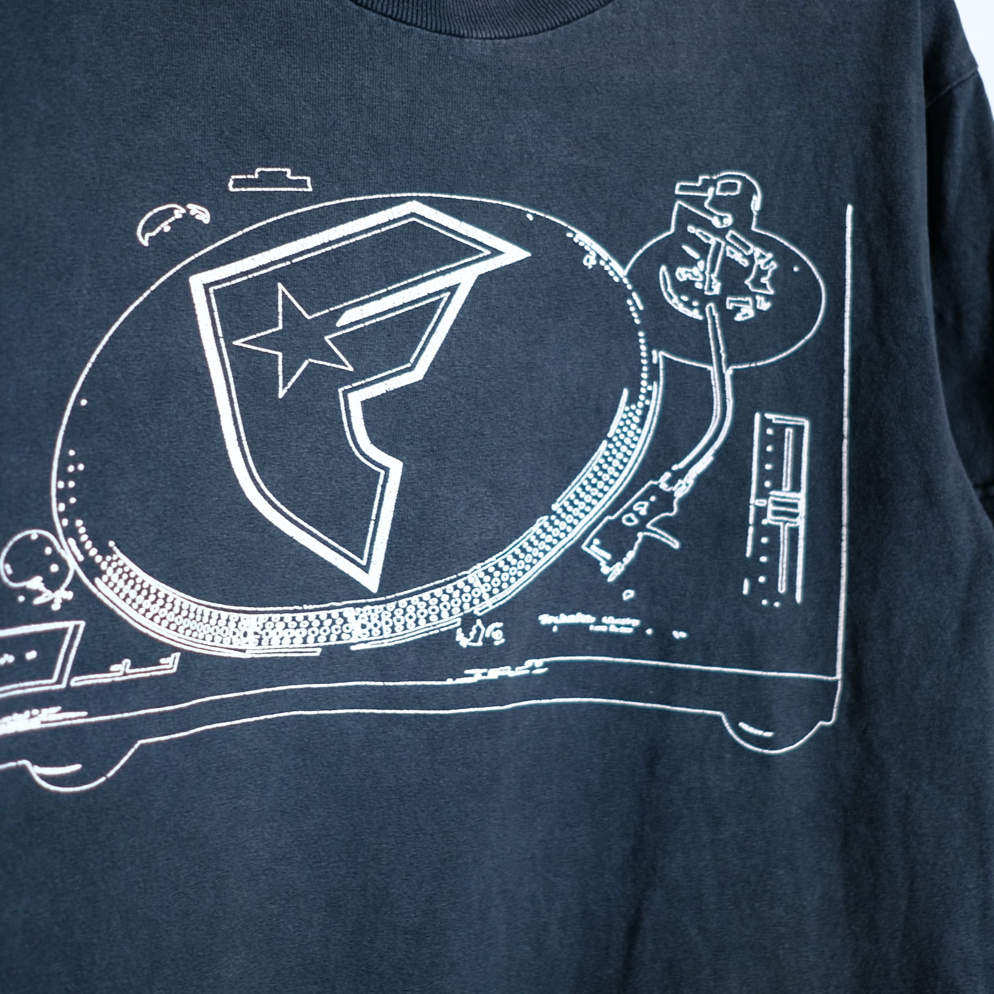1990s ビンテージ フェード 黒 プリントTシャツ DJ 古着屋 ボロ