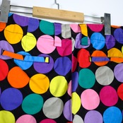 カラフルなポルカドットのセットアップですが、着用すると意外と派手すぎないデザインです。