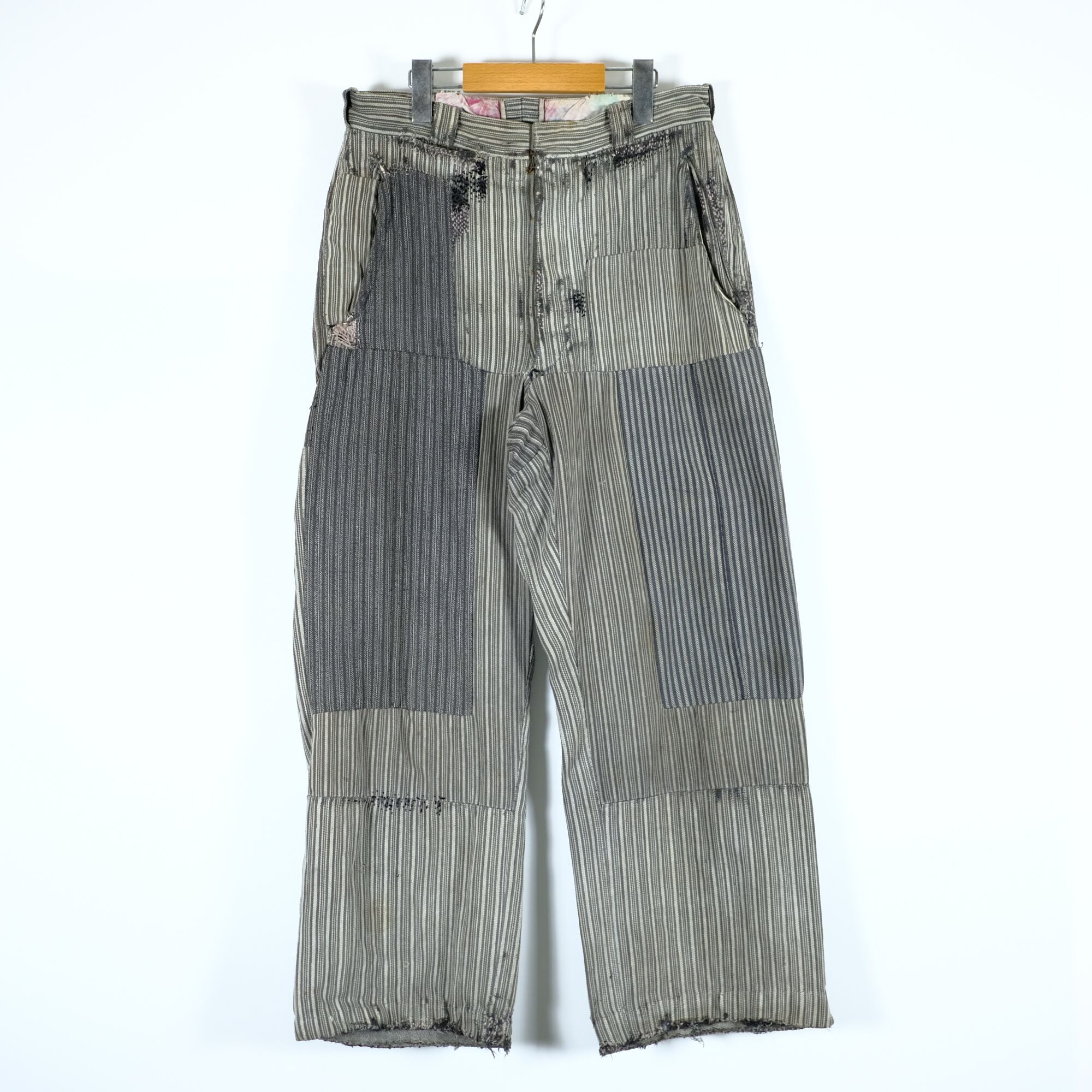 1930〜40s フランス ビンテージ ストライプ ハードパッチワークパンツ
