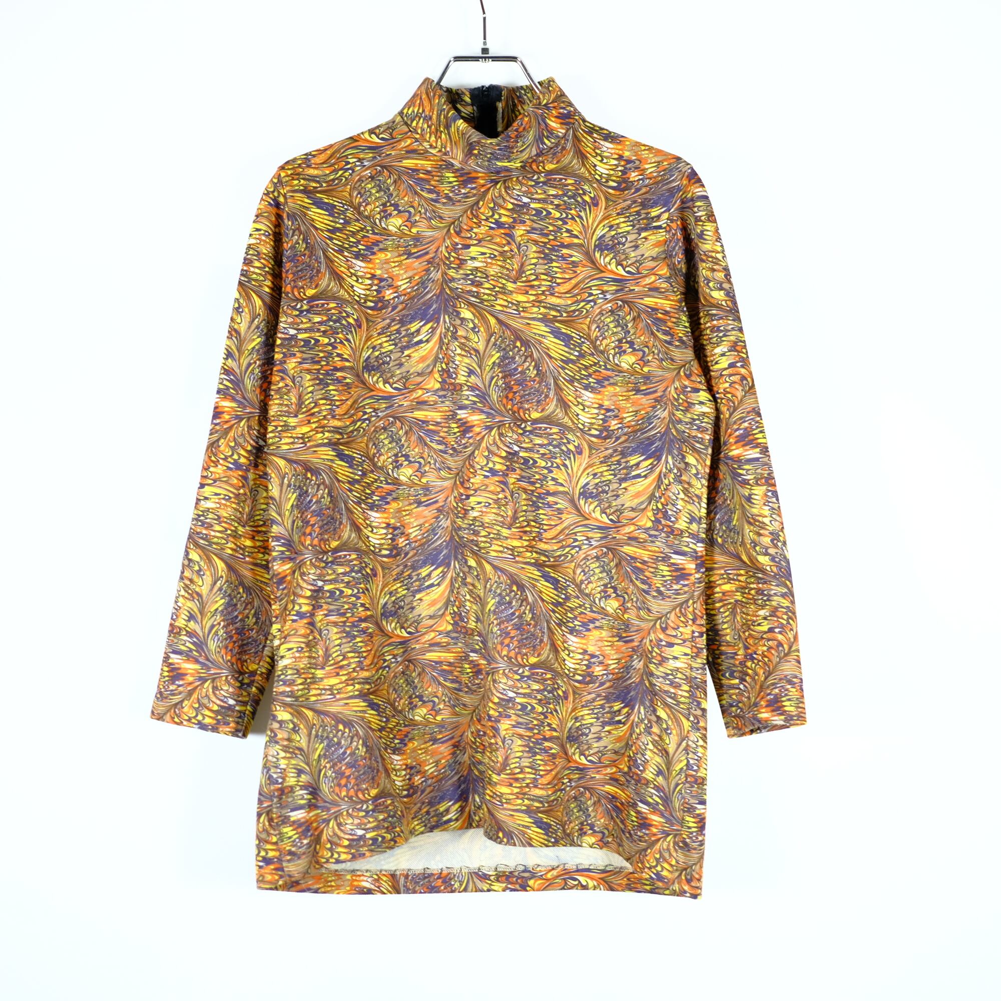 1980s ビンテージ サイケデリック ハイネックカットソー 総柄 アート 古着
