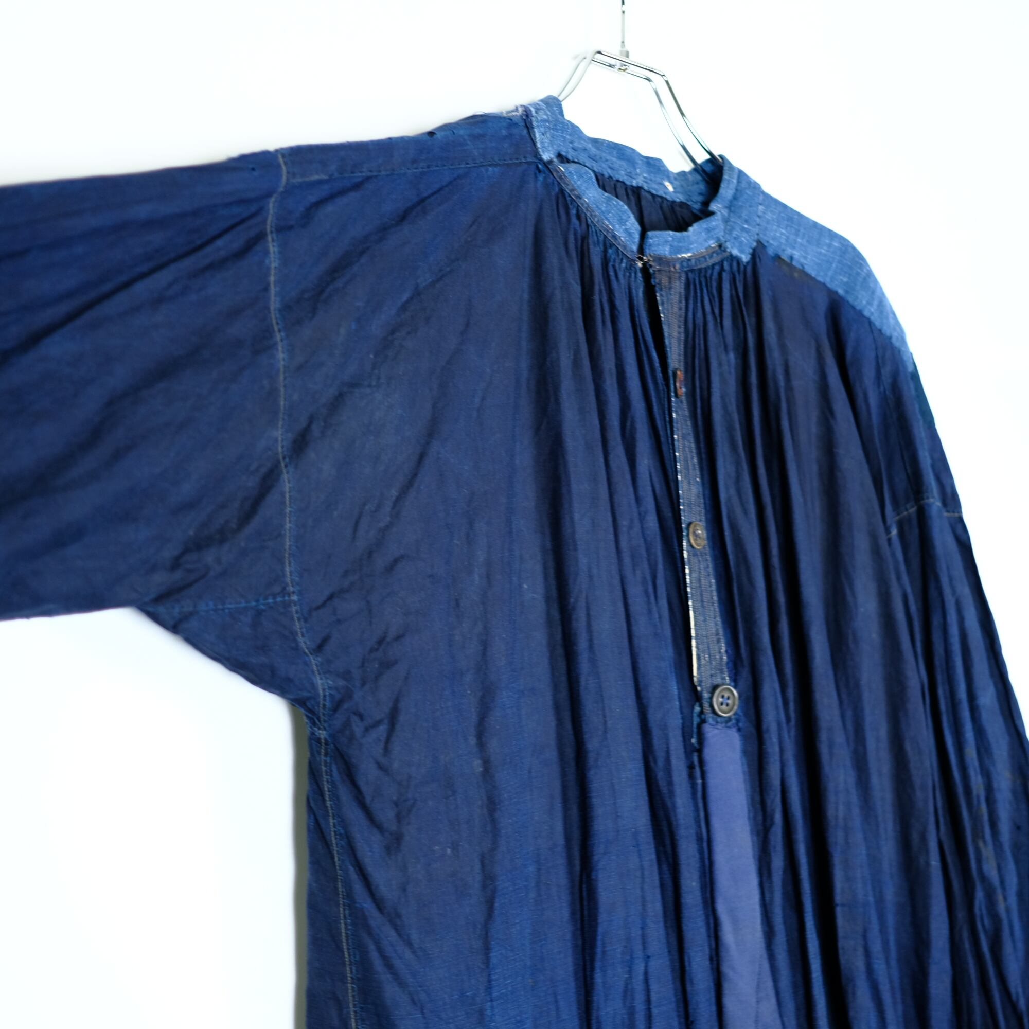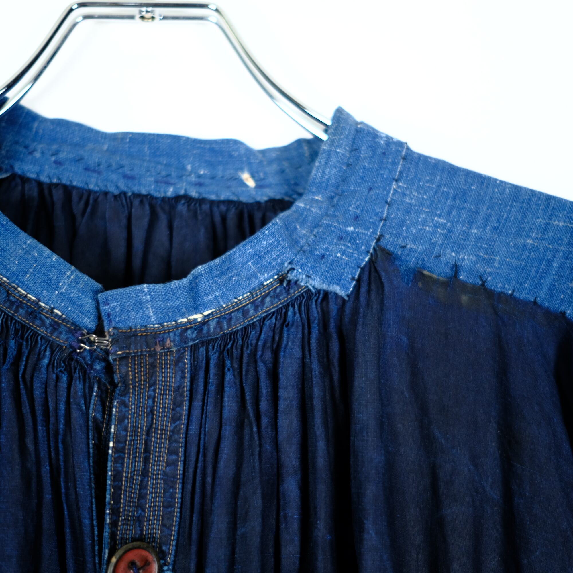 こちらはフランスの古いぼろぼろのインディゴリネンのスモッグを再構築したもの。