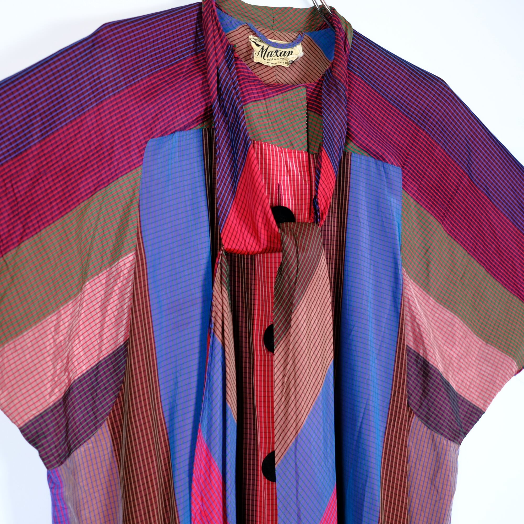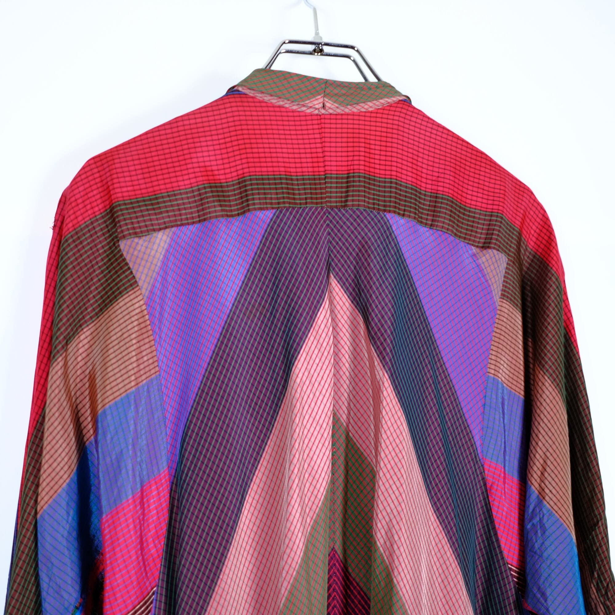 1960s ビンテージ ドルマンスリーブ カラフルチェック シルクコート 古着屋