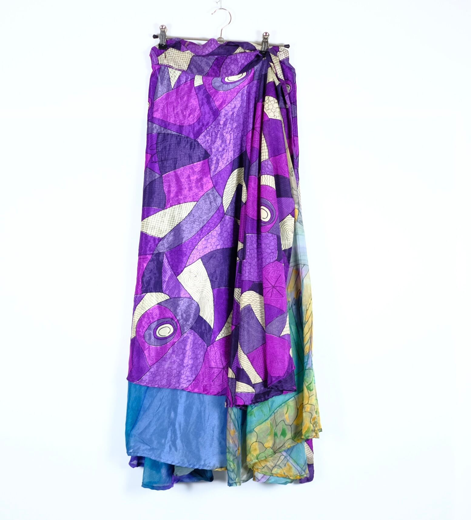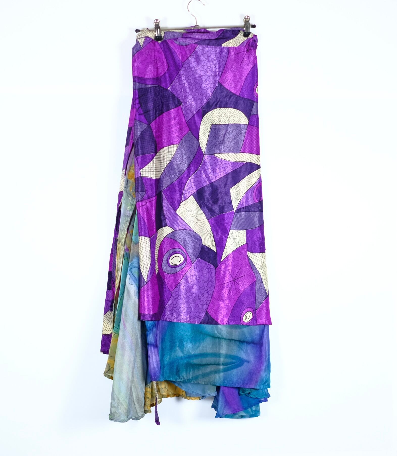 1970s ビンテージ 巻きスカート レーヨンシルク 総柄 アートデザイン 古着