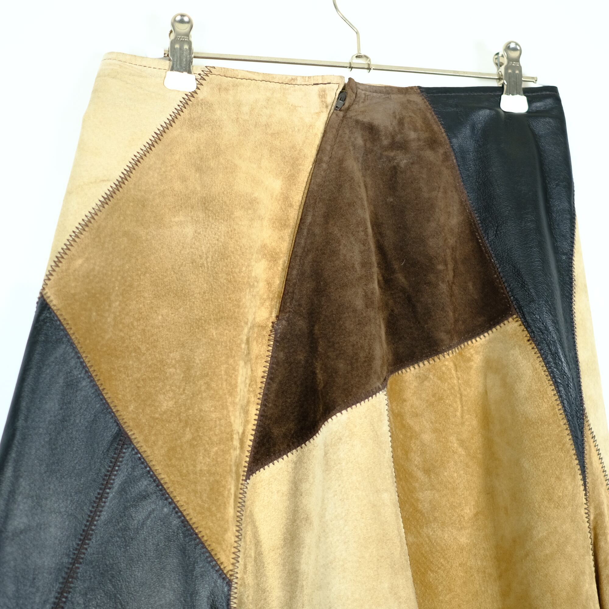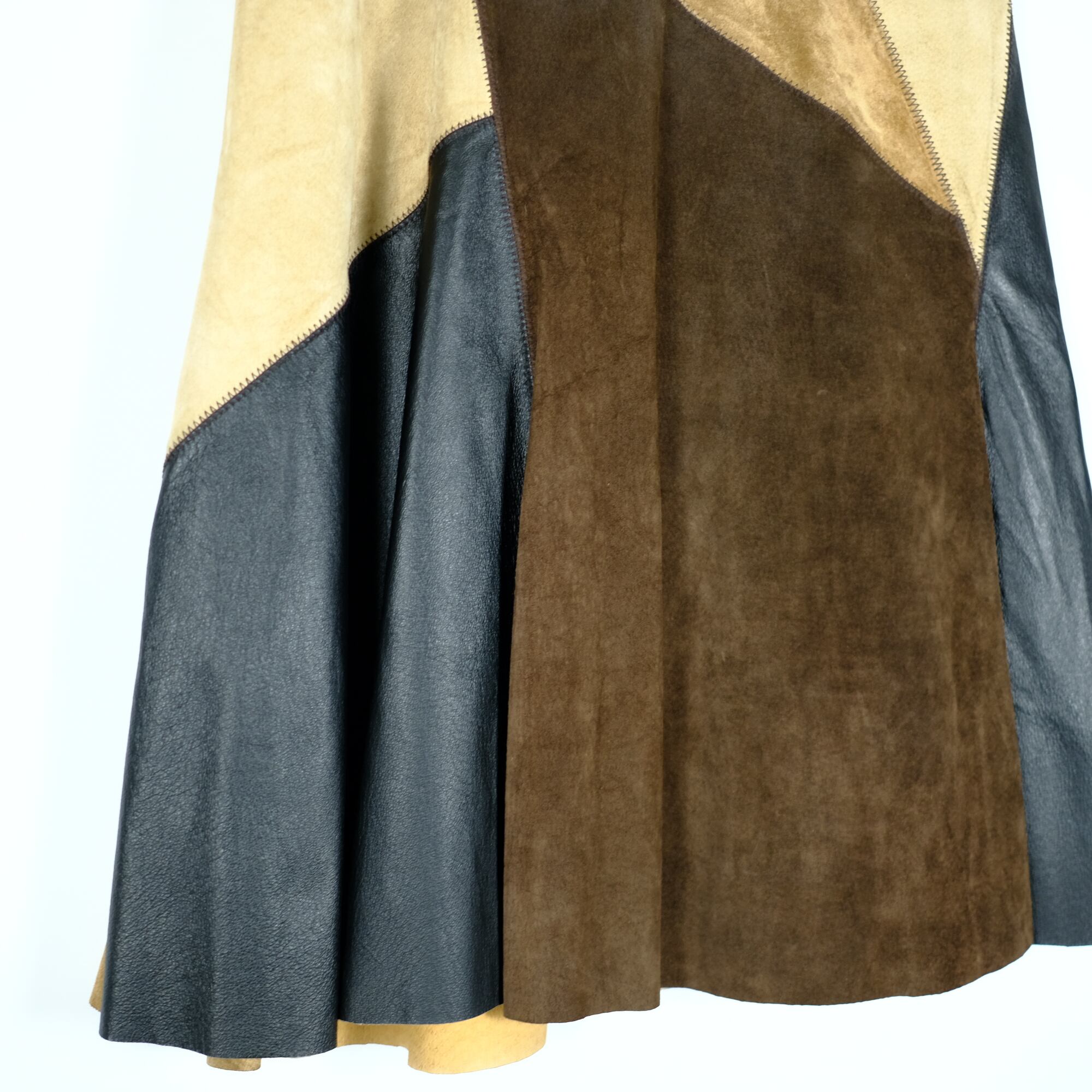 1990s ビンテージ レザーパッチワーク切り替え フレアスカート 古着屋