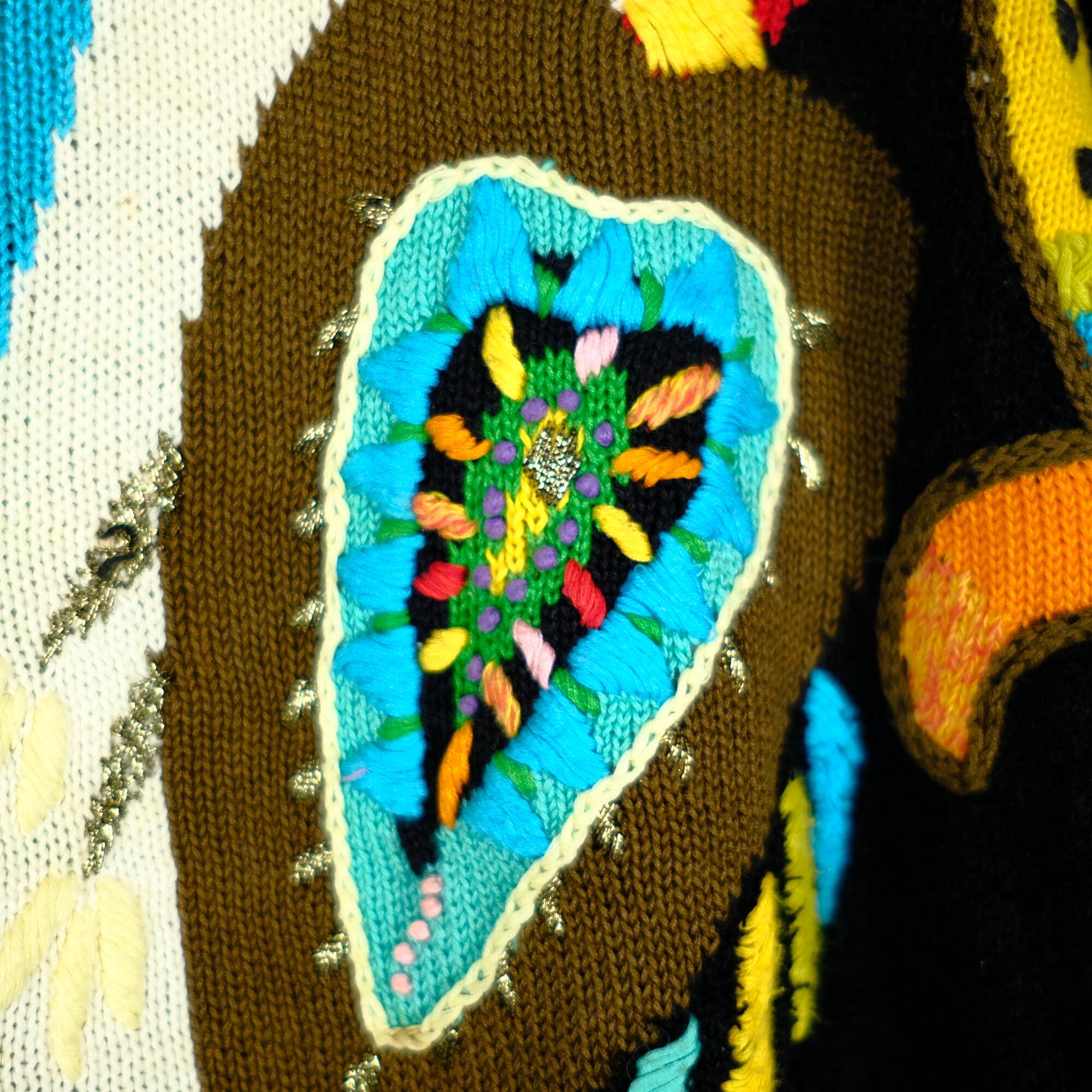 1980s FICCE 総柄 刺繍 ニットセーター ハンドメイド 古着屋 アート