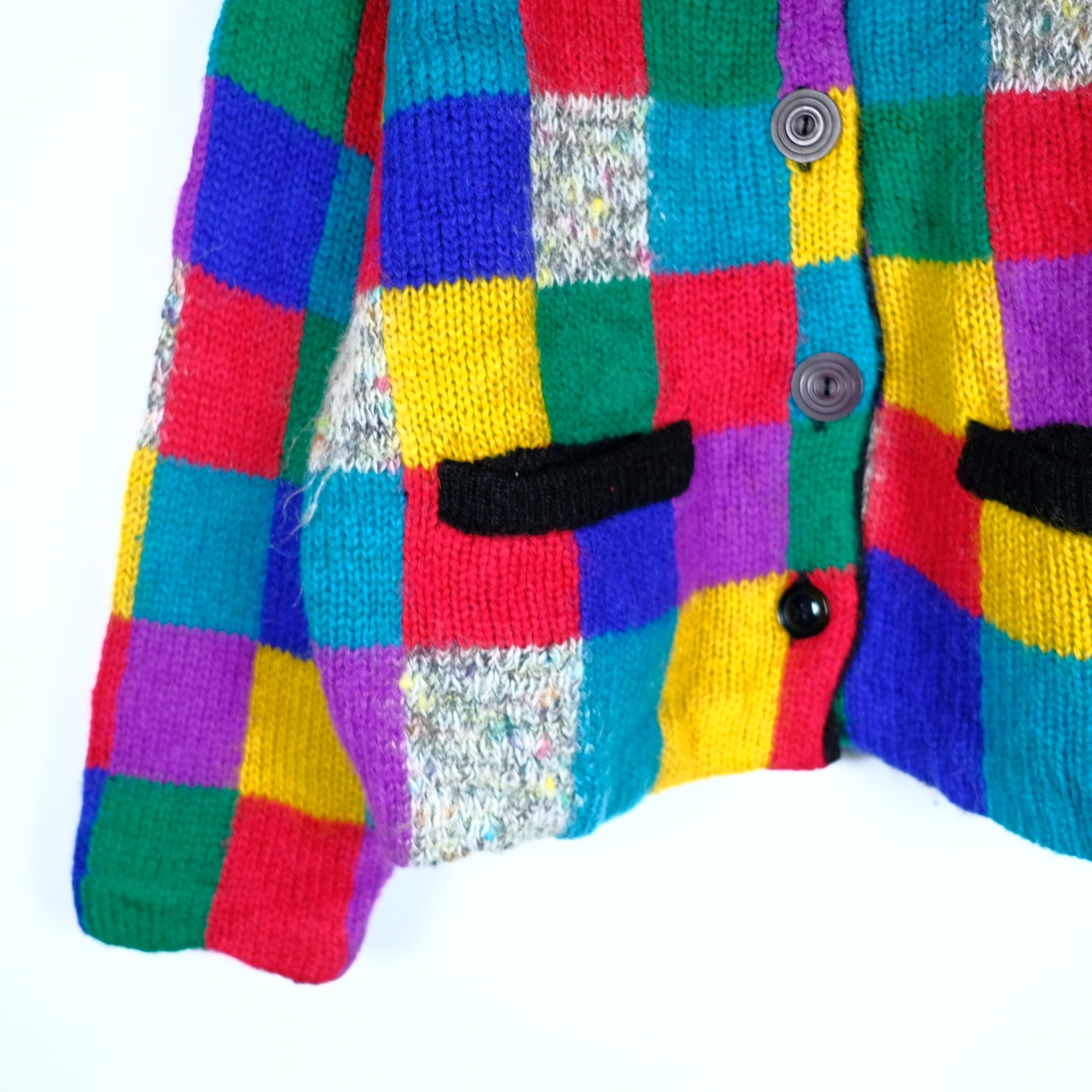 1980s ビンテージ カラフルブロックチェック ニットセーター ジャケット