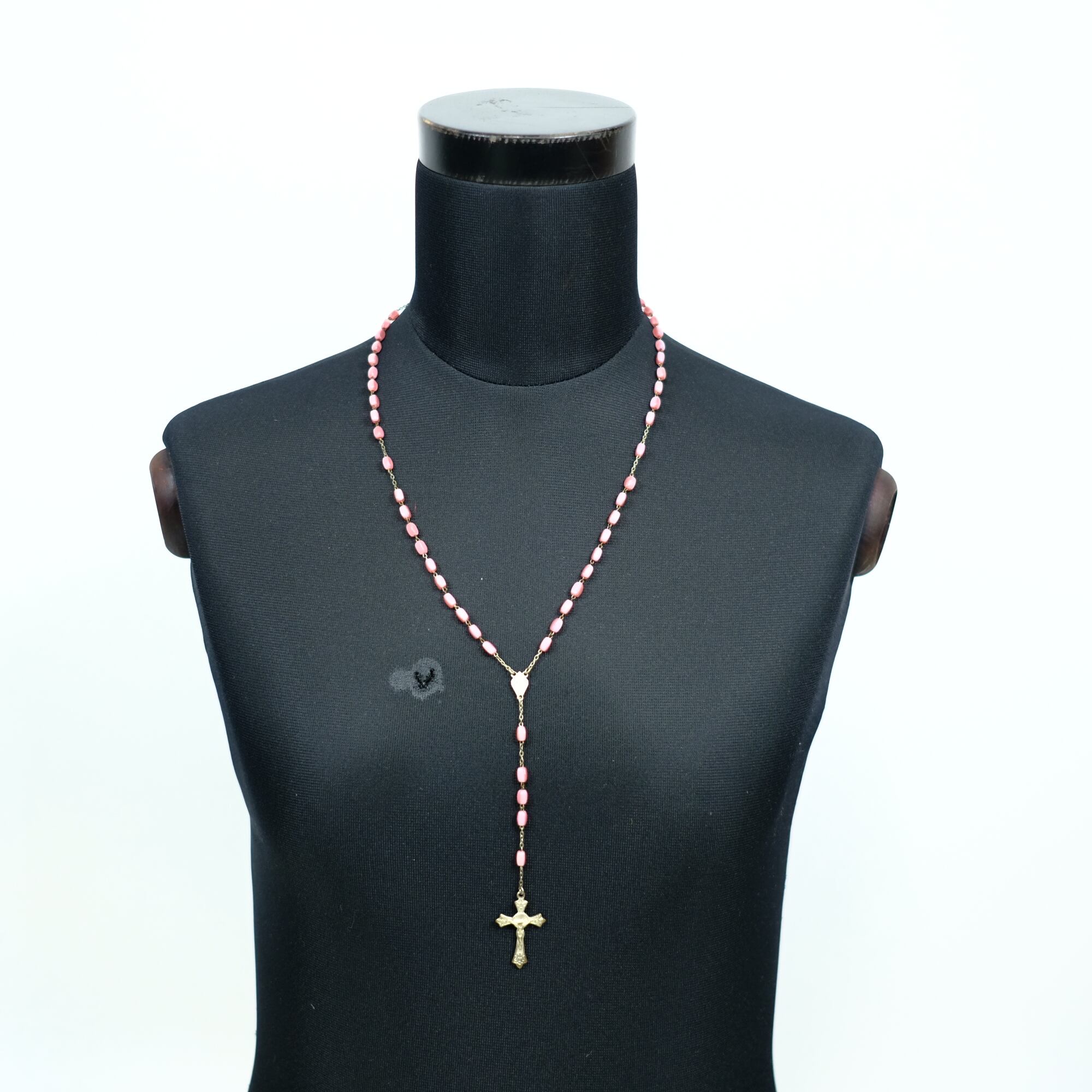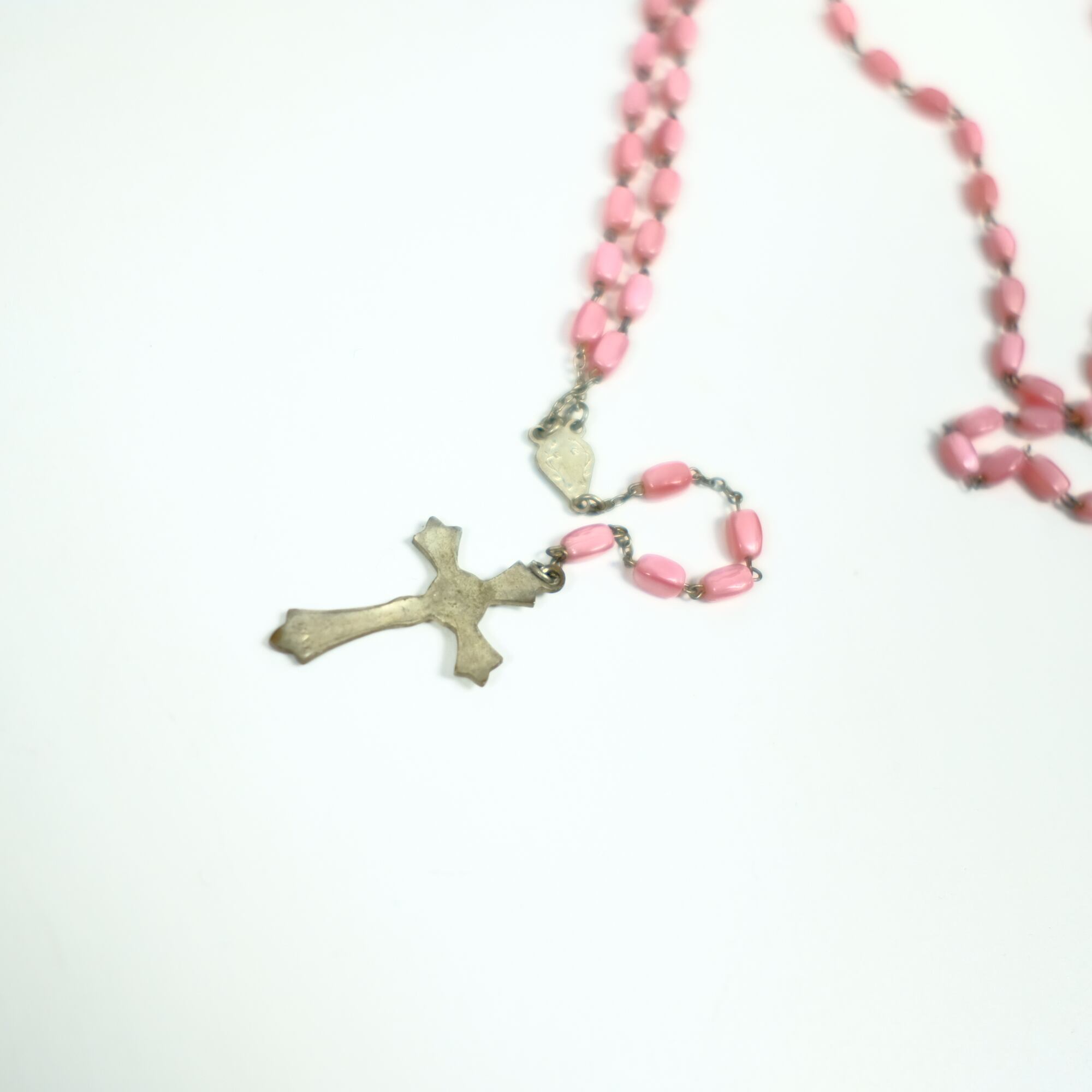1970s イタリア製 ビンテージ ロザリオネックレス キリスト教 ピンク