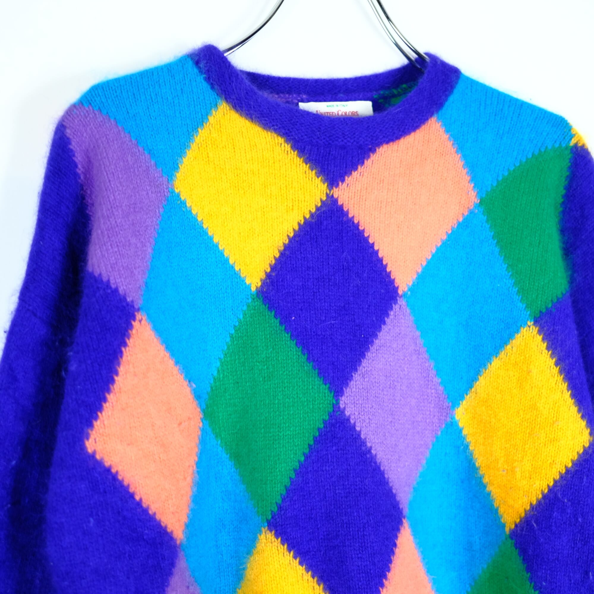 1980s BENETTON イタリア製 アンゴラモヘア カラフルチェックニット