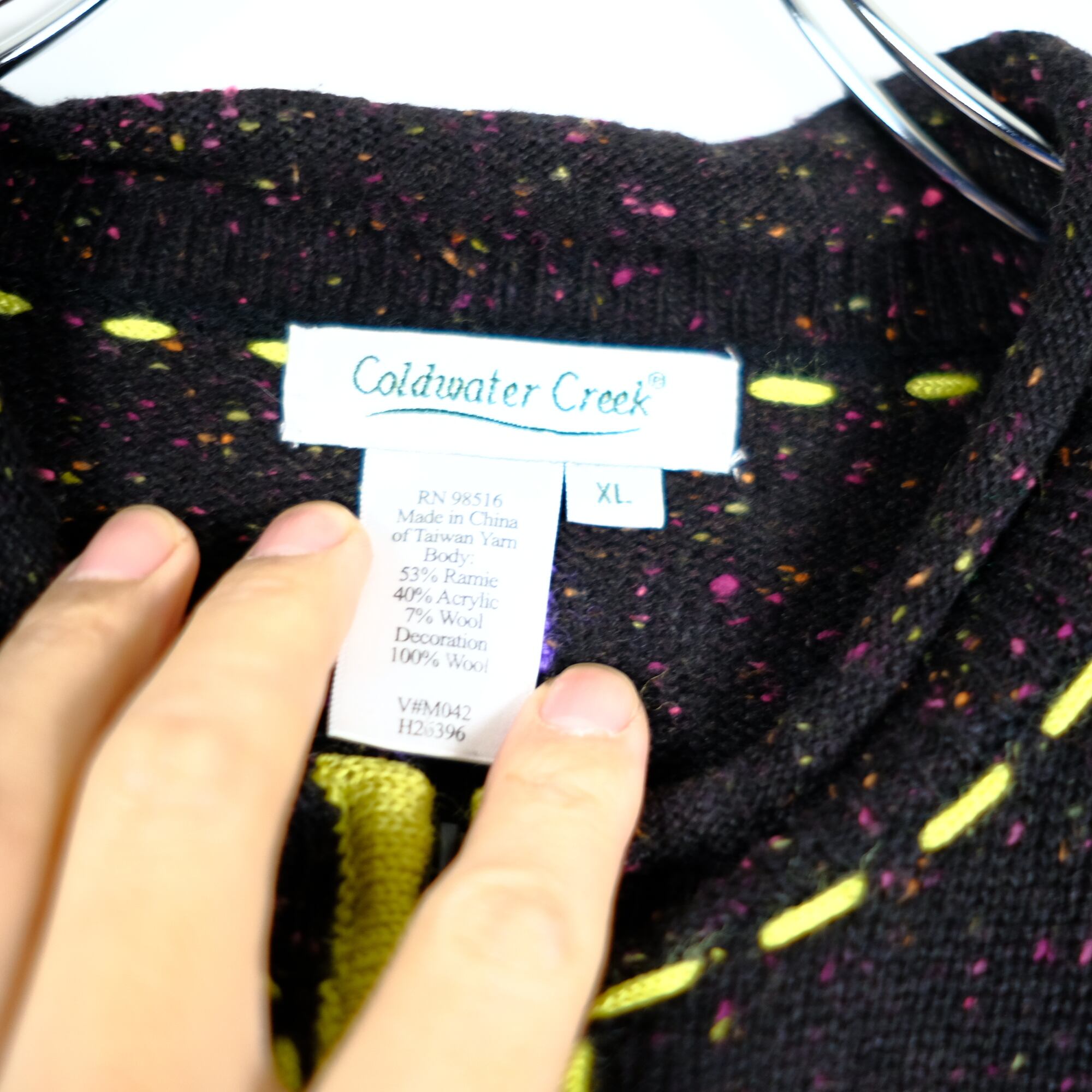 ビンテージ ハイネック ハーフジップ ニットセーター カラフル ドット