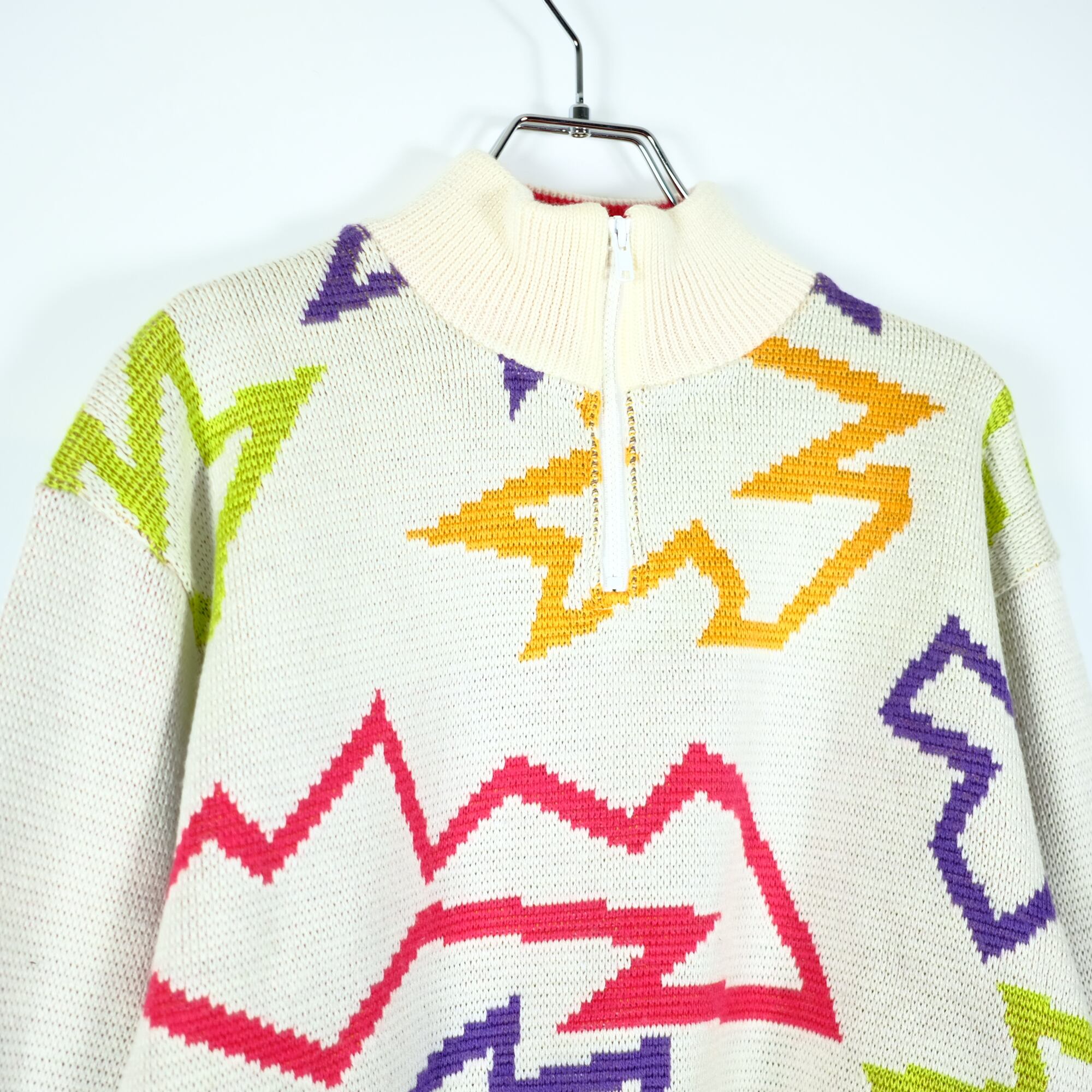 1980s ビンテージ アートデザイン ハーフジップニットセーター 古着屋