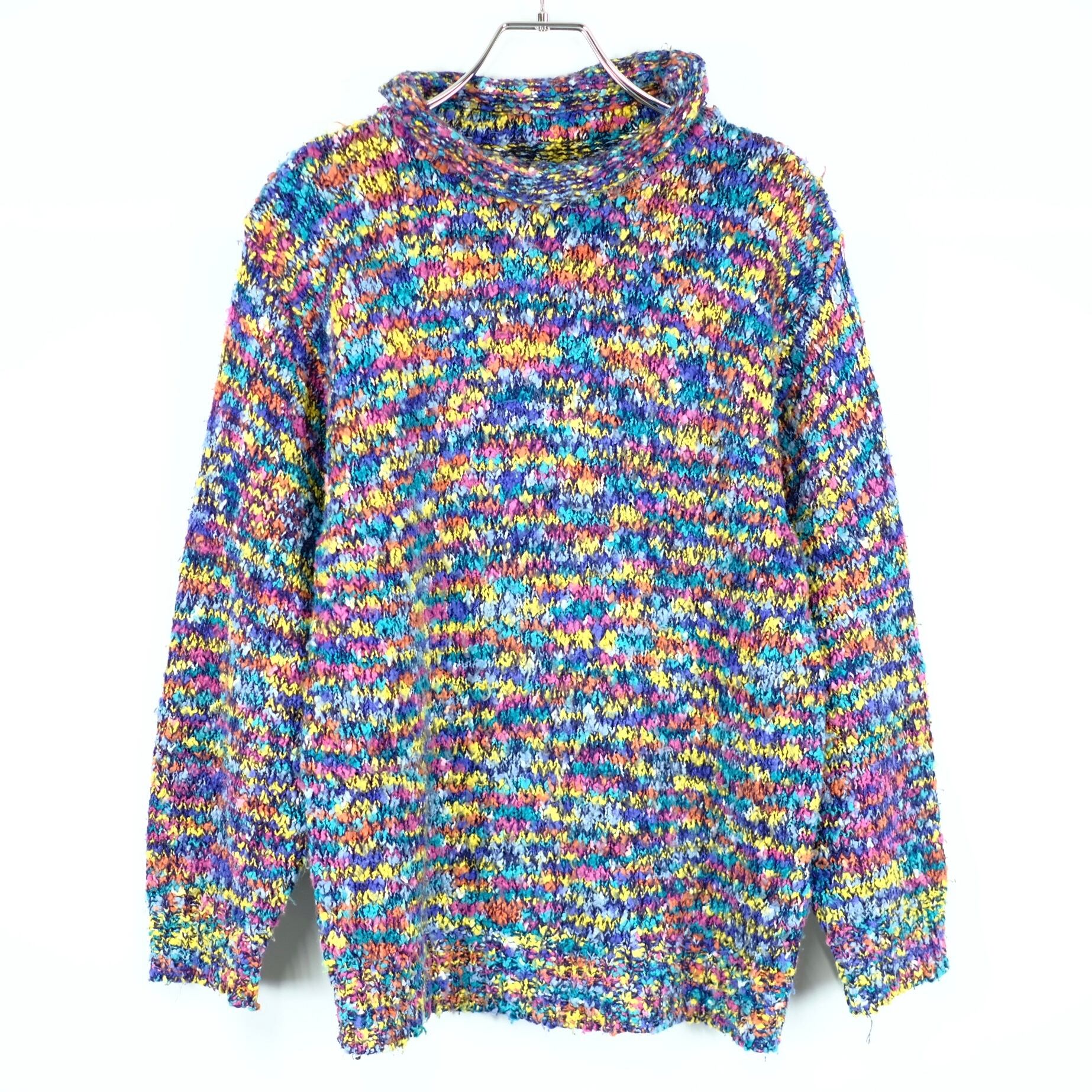 1970s ユーロヴィンテージ カラフルミックスニットセーター ロールネック