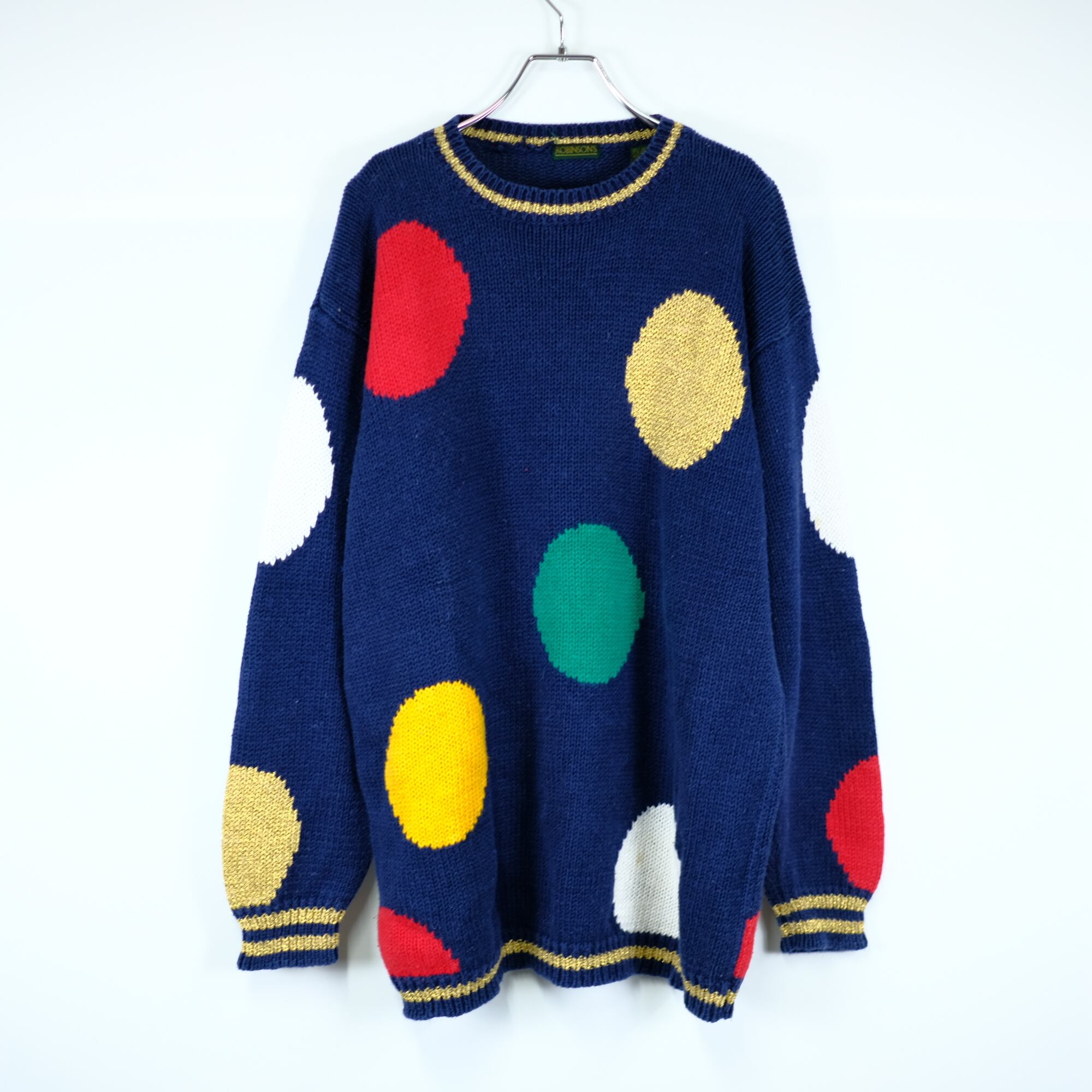 1990s ビンテージ オーバーサイズ カラフル ポルカドット ニットセーター