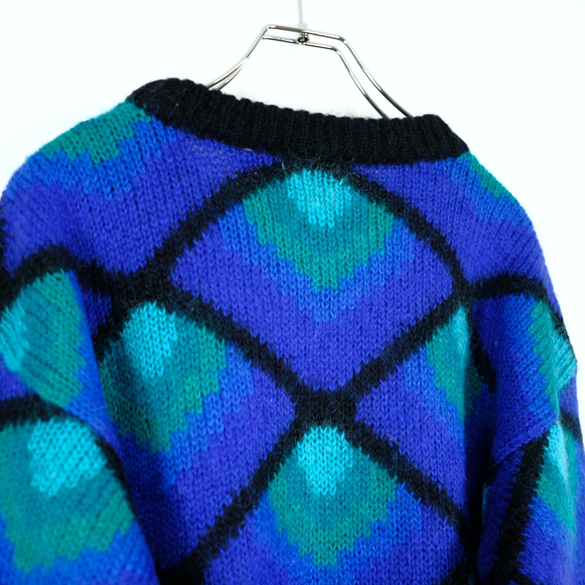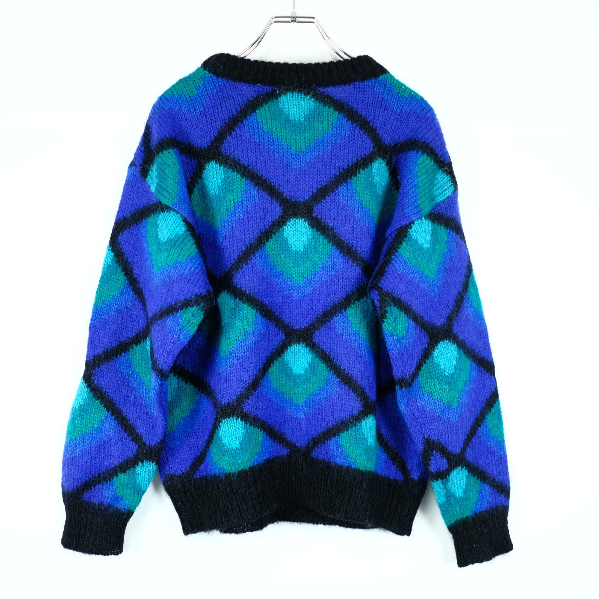1990s ビンテージ モヘアデザインニットセーター ウール 総柄 アート