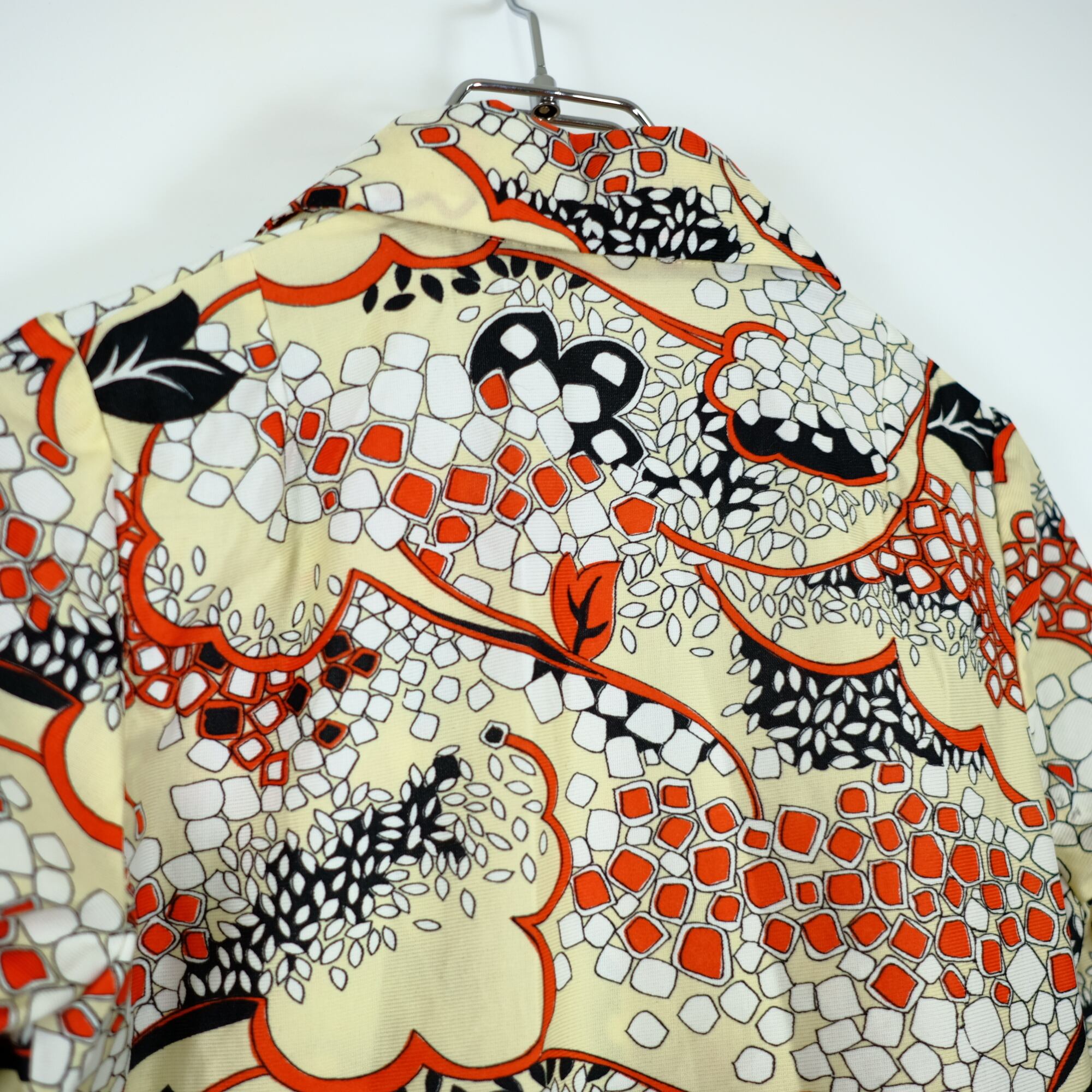1970s ビンテージ 総柄デザイン ポリシャツ 和柄 アート 古着屋